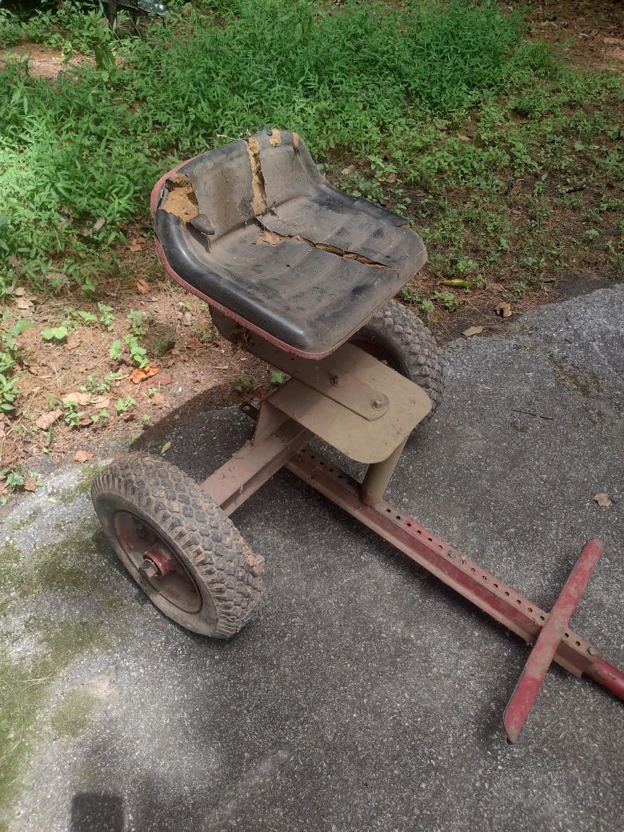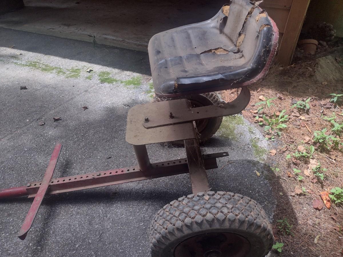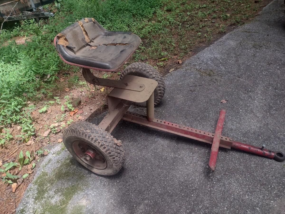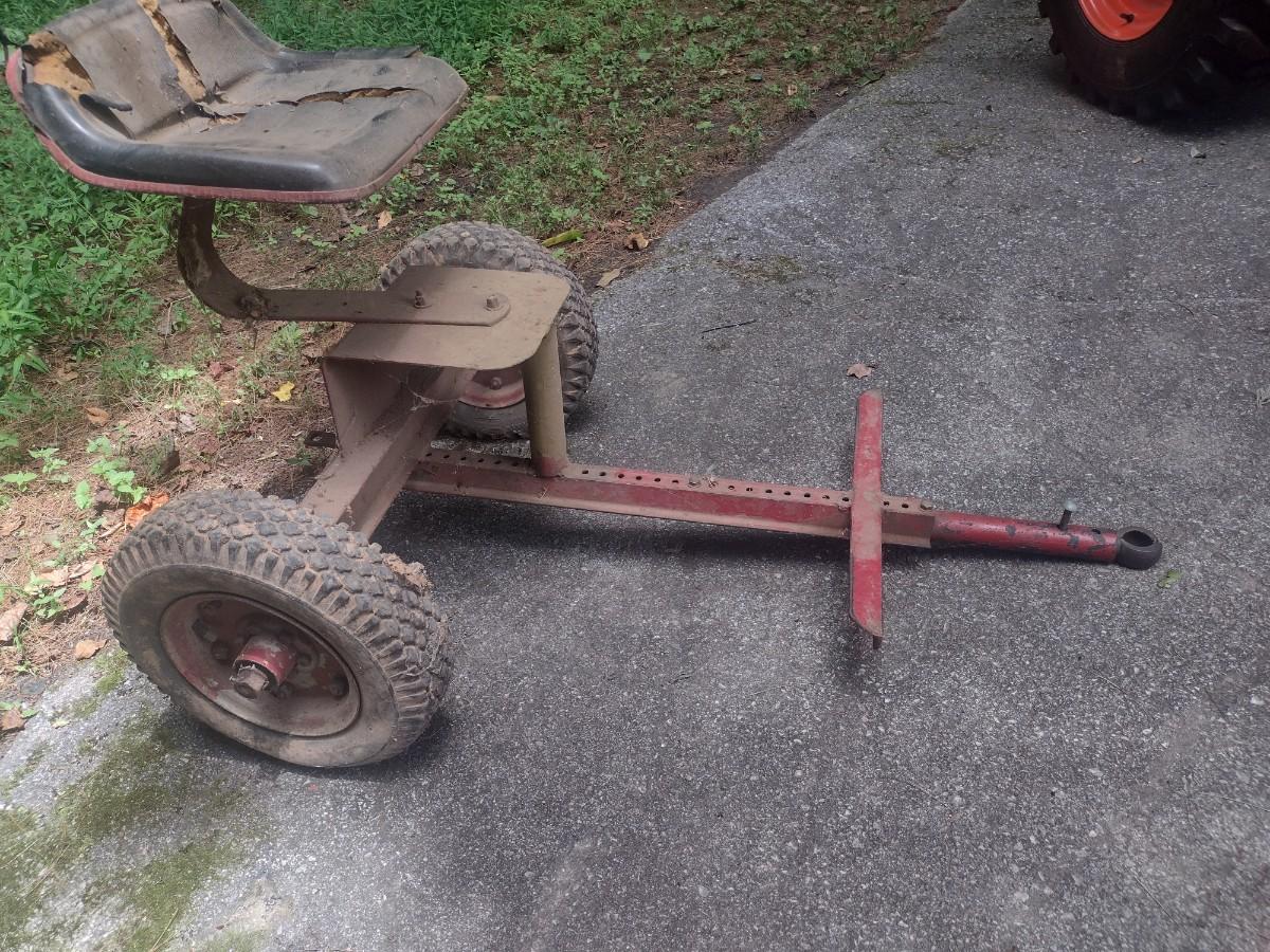 Ride-On Two-Wheel Sulky Implement. Tire need air. See photos for condition.