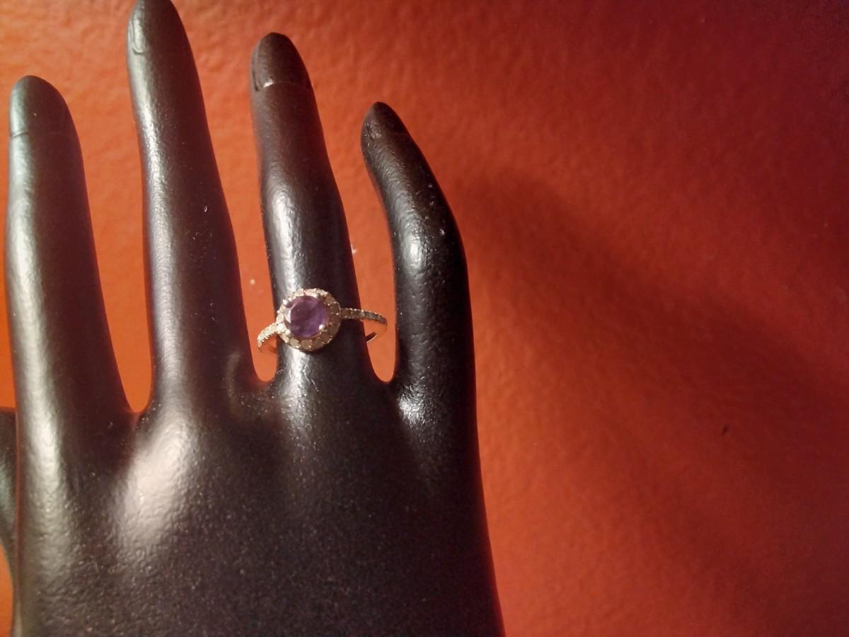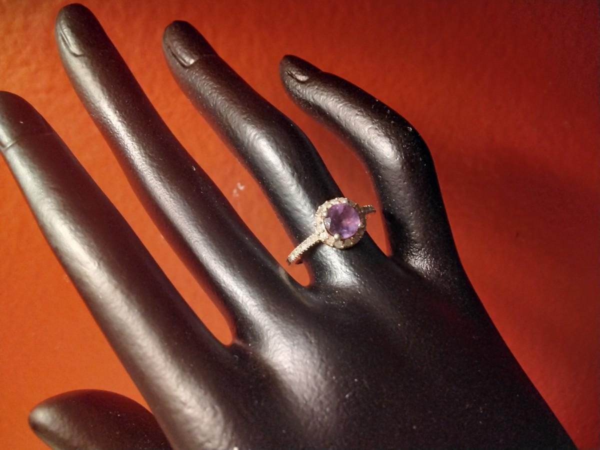 Stunning Amethyst and Diamond Ring 14k/925 Size 7.5