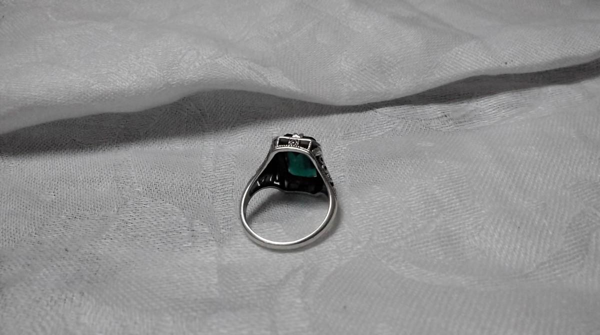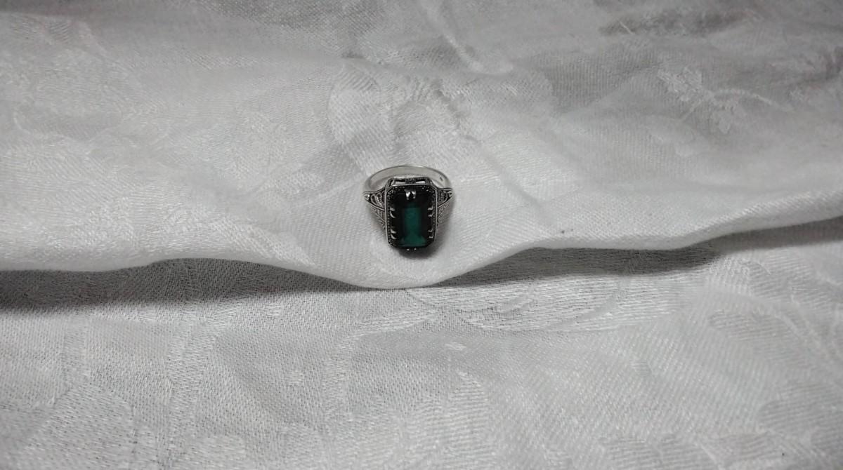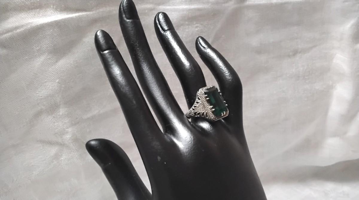 Beautiful Filigree Emerald Quartz 925 Ring Size 9