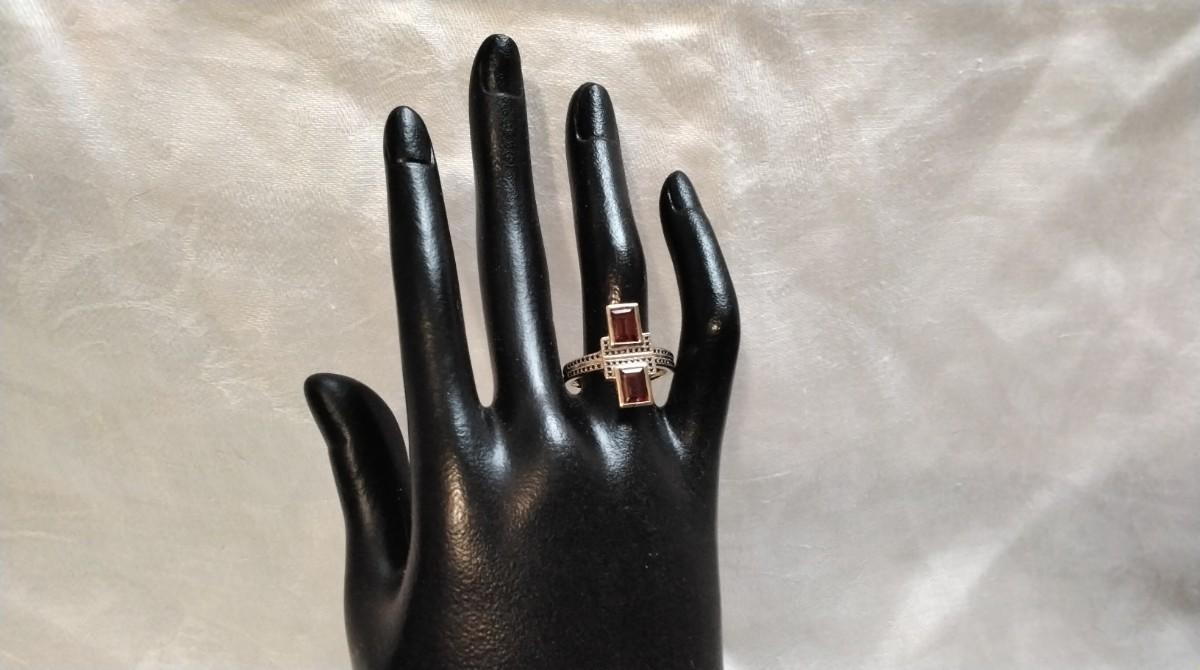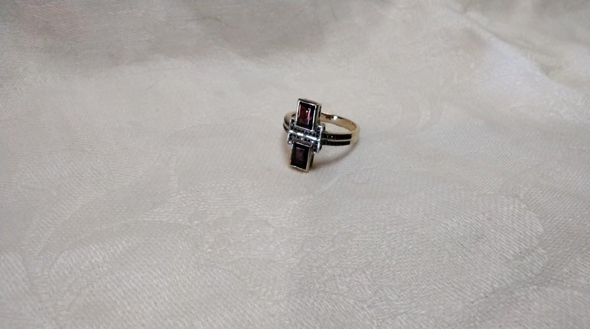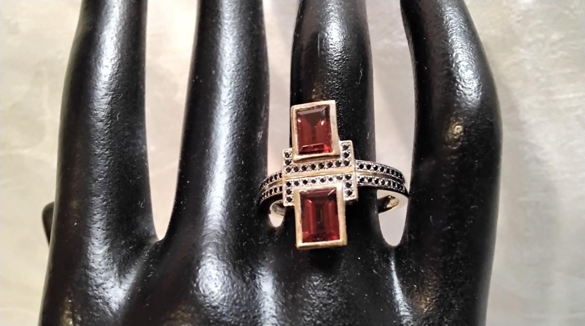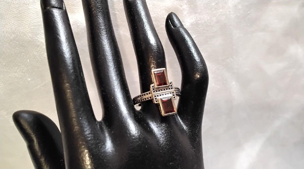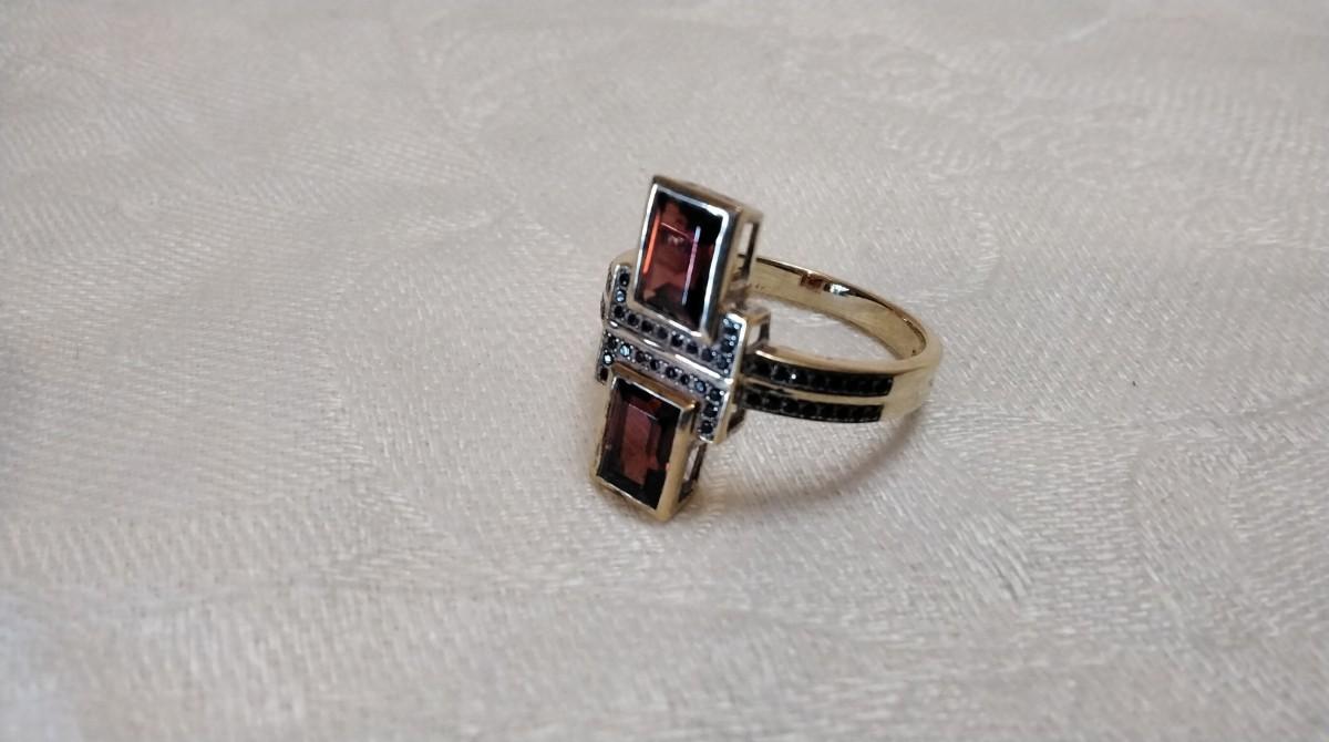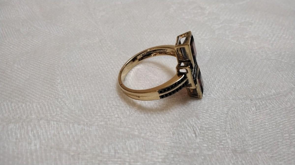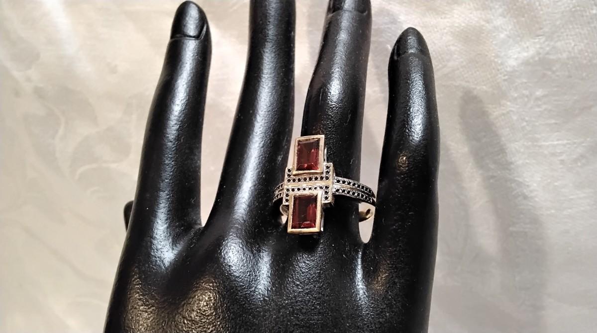 Vintage Garnet and Black Spinels Gold Vermeil Ring Size 9