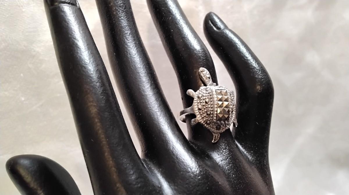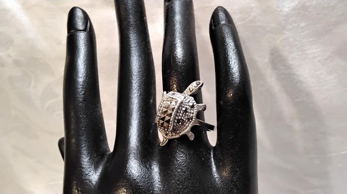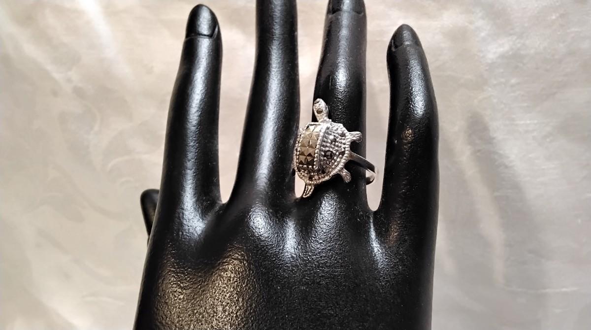 Most Fun Ring Ever! Marcasite 925 Turtle With Moving Head Size 7