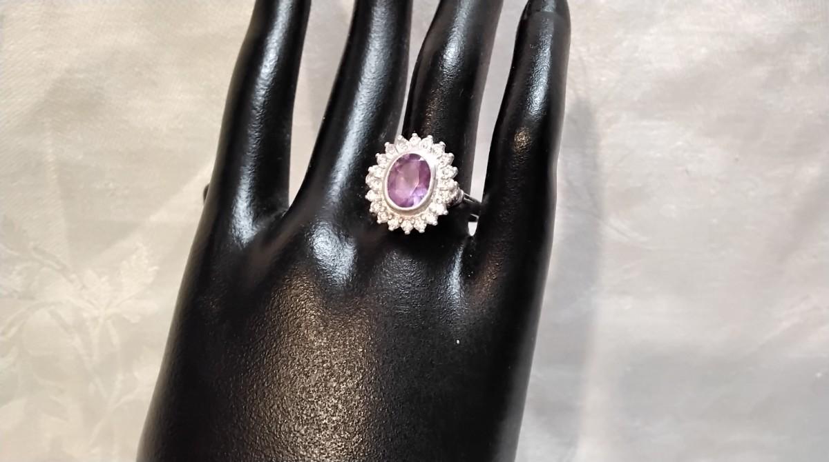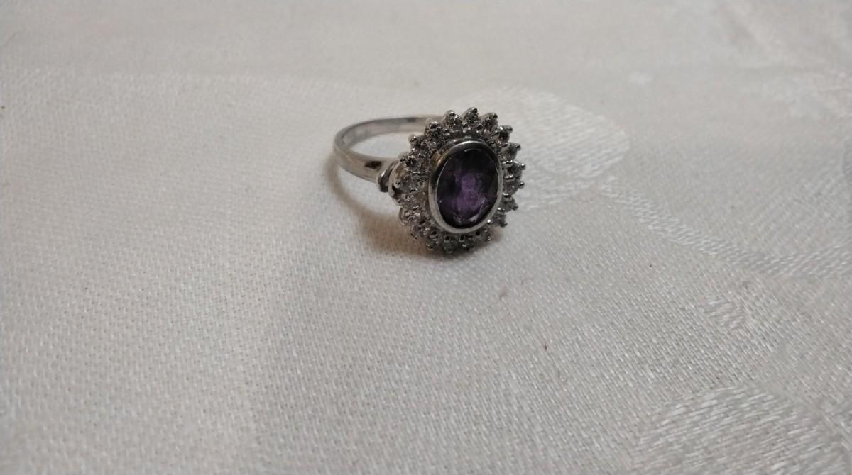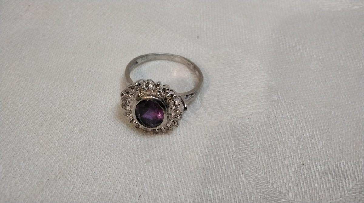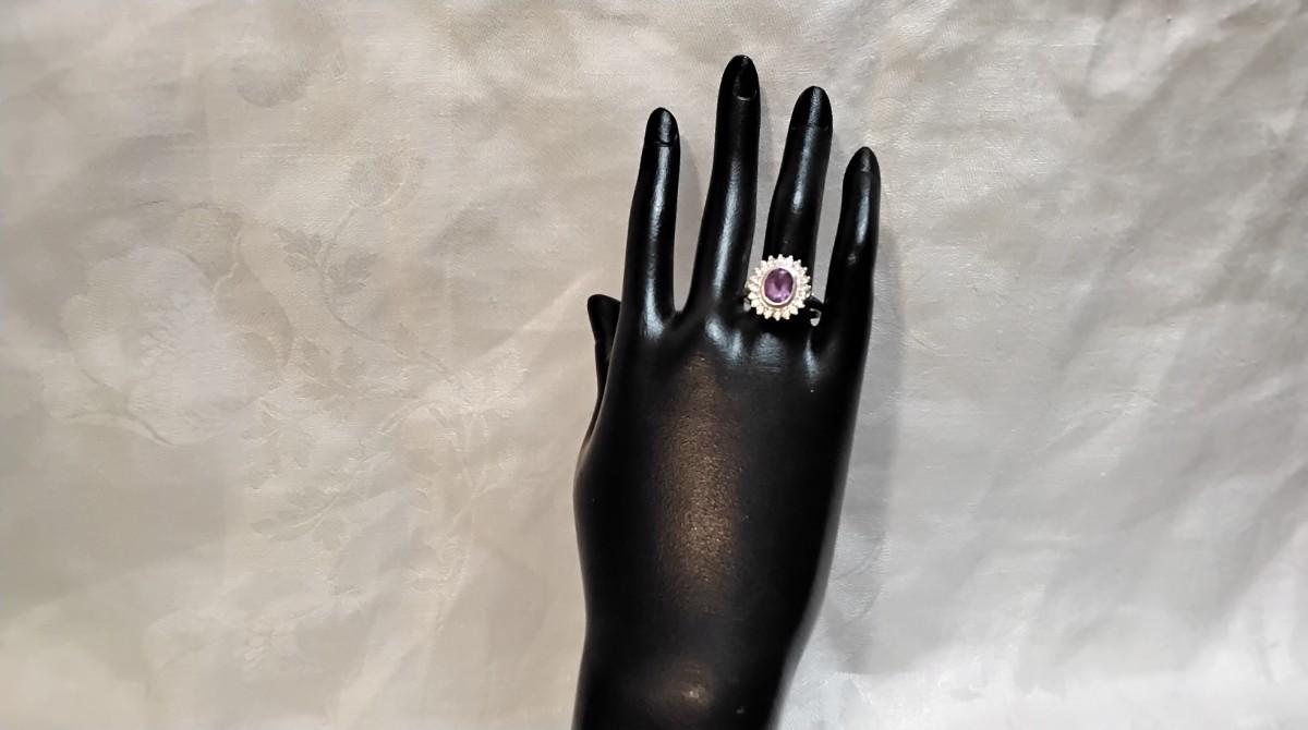 Vintage Amethyst Surrounded By White Sapphires 925 Ring Size 9