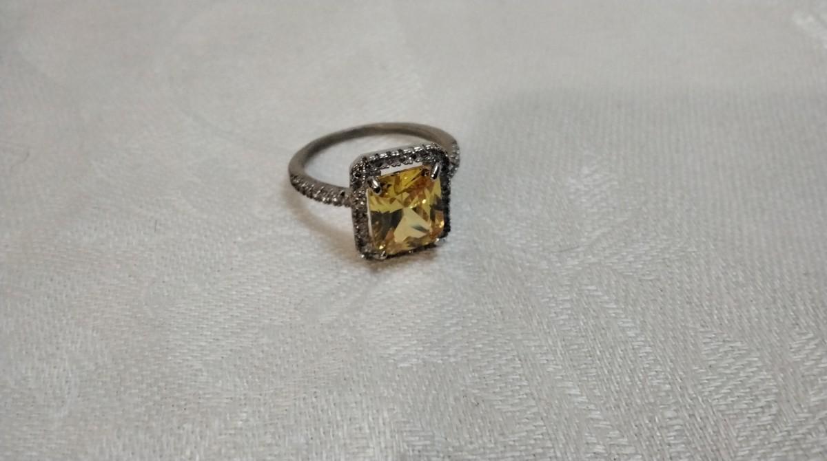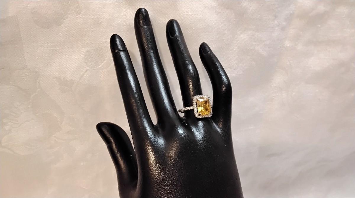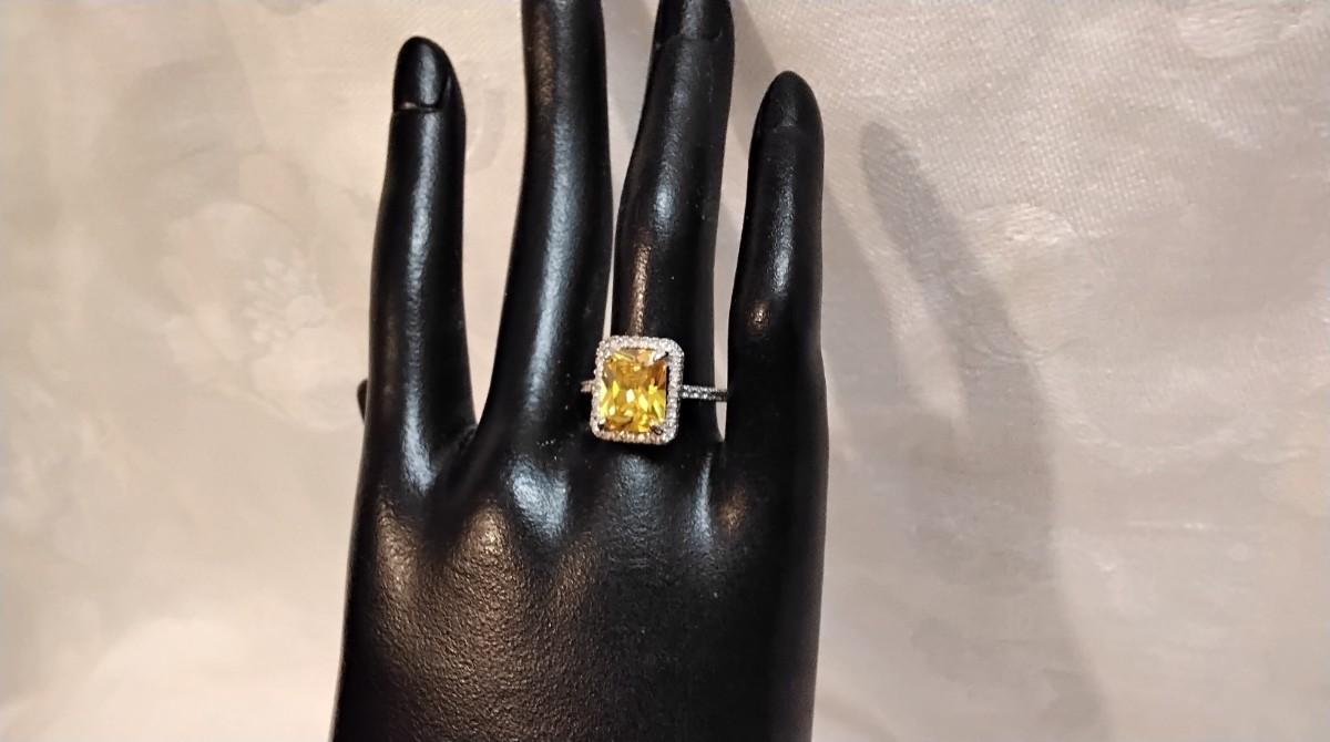 Citrine Surrounded By White Sapphires 925 Ring Size 7