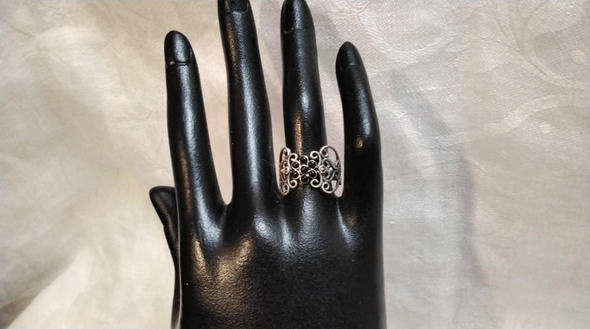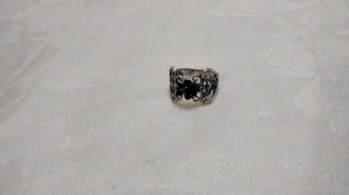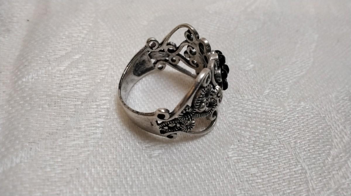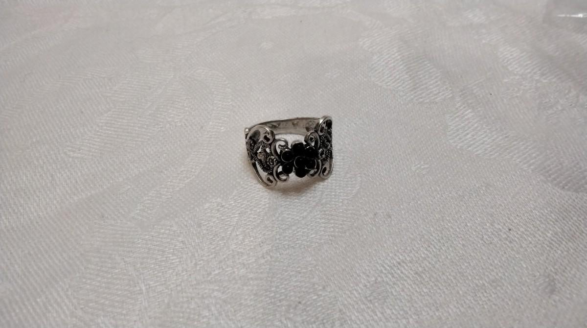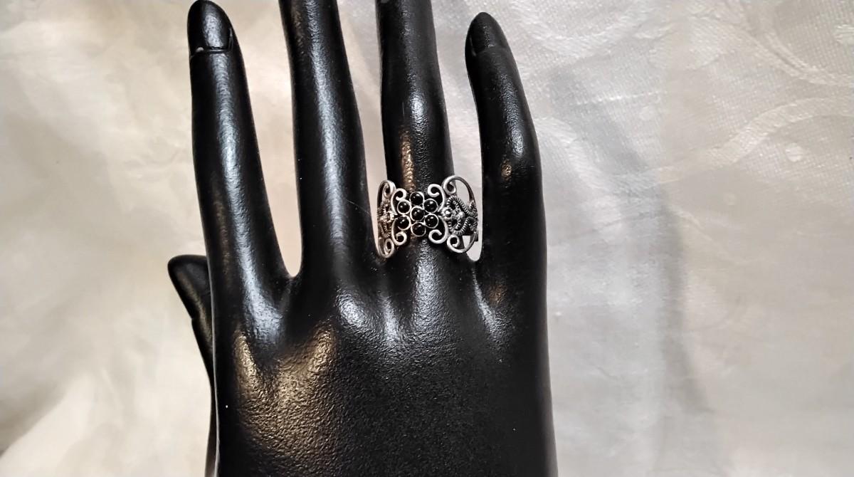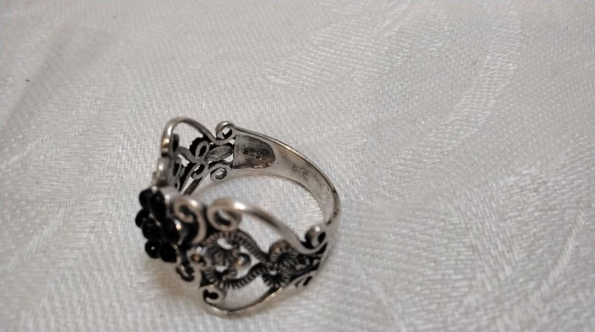 Unique Onyx Flower Lacework 925 Ring Size 6.5