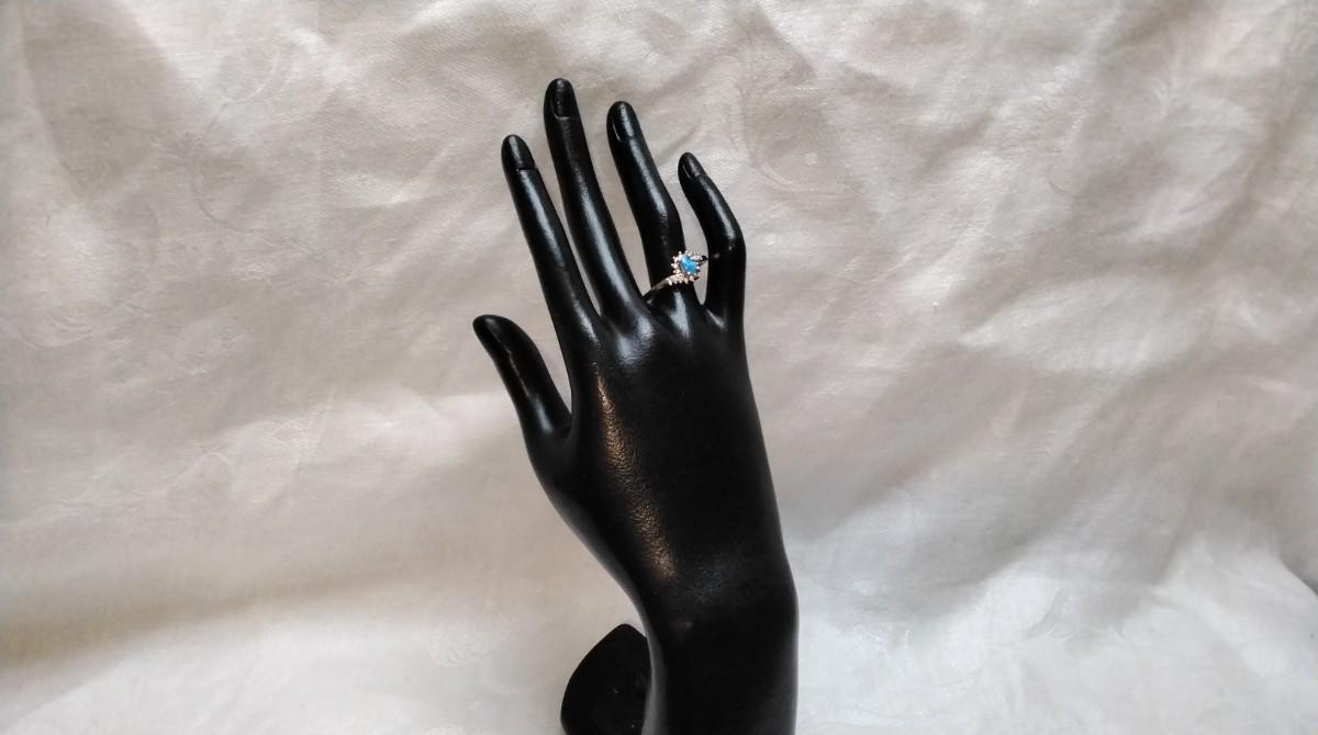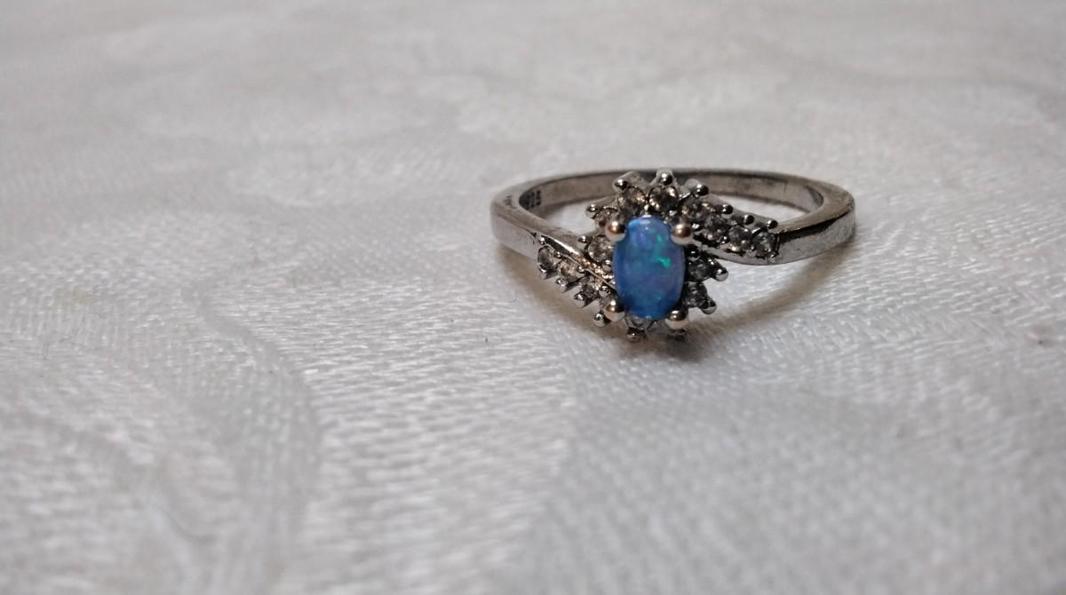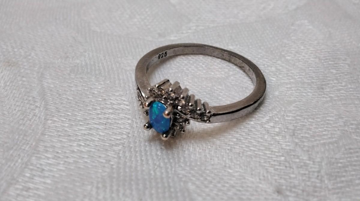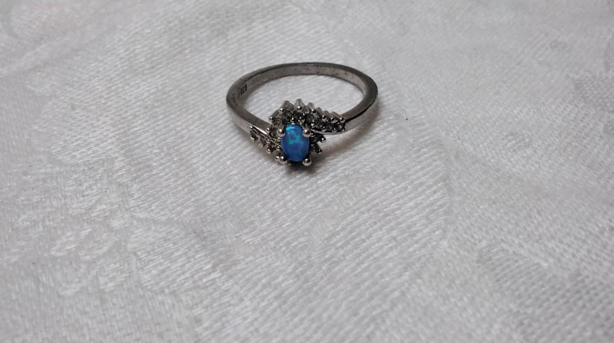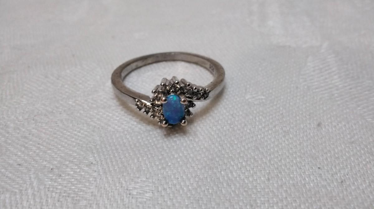 Blue Fire Opal With White Sapphire Accents 925 Ring Size 11