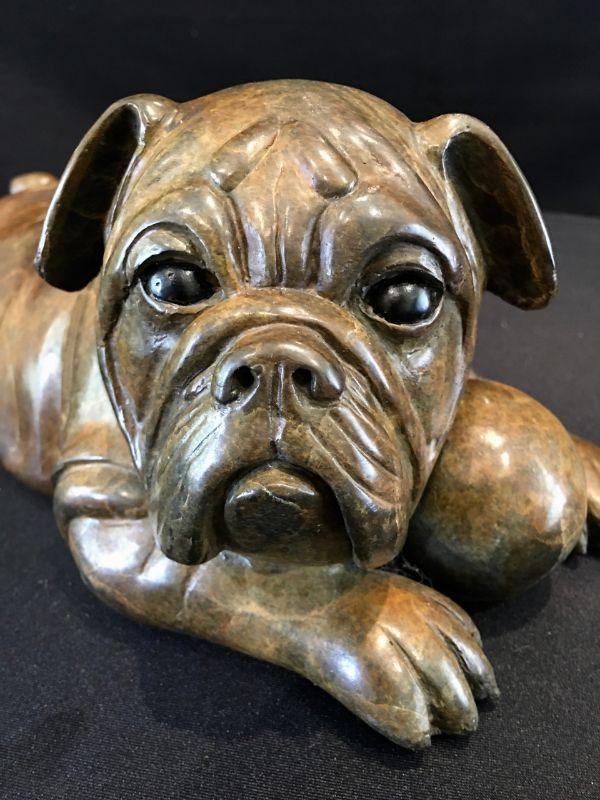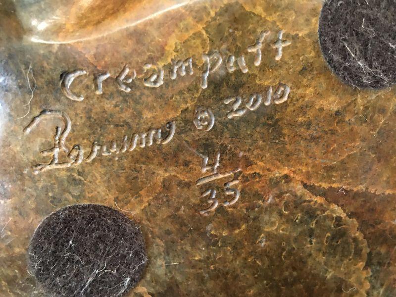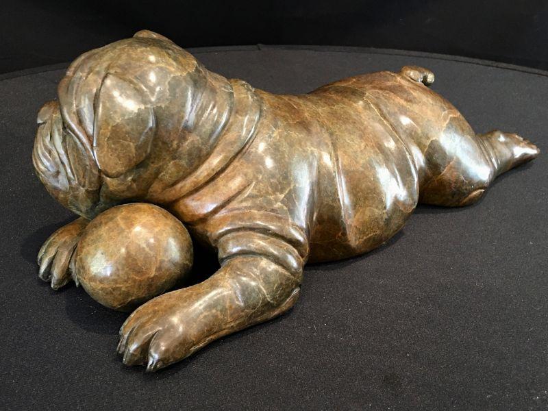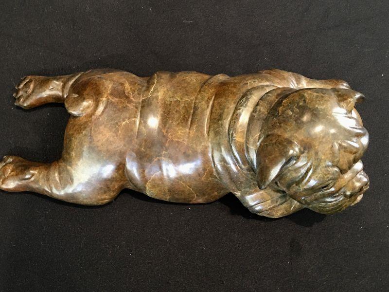 Robert Larum Colorado artist - Sculpture of Bulldog Puppy - Creampuff - Edition 4/35 Signed 15" L. Heavy! Well represented artist.