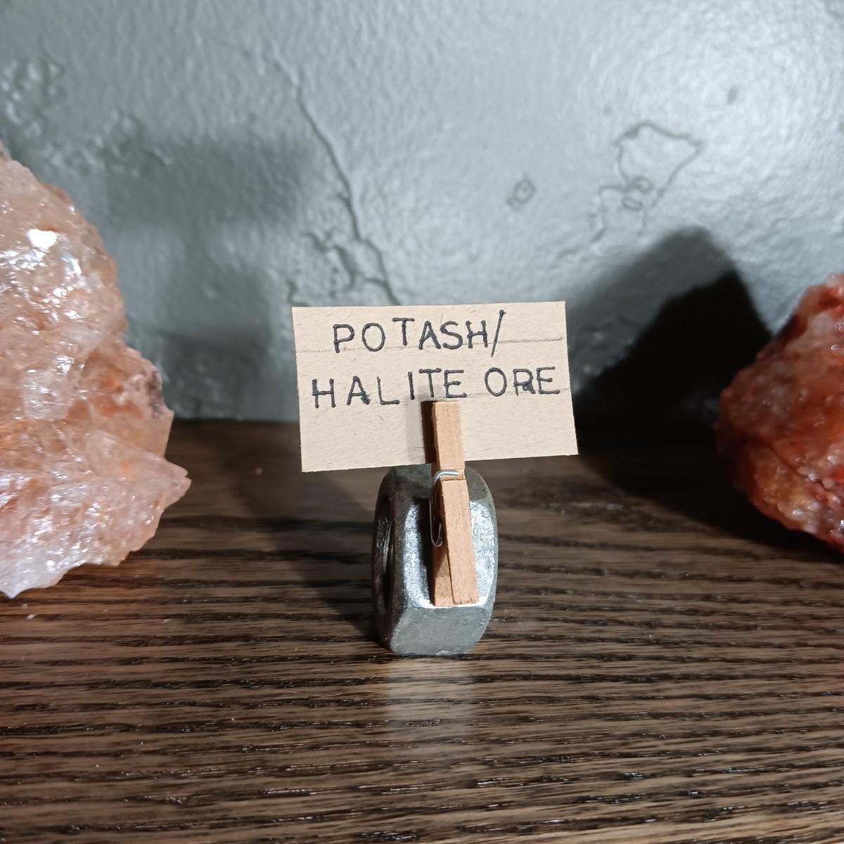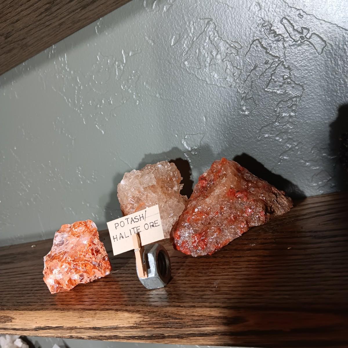 ROCKS FROM A COLLECTION LABELED SATIS FORTIS & POTASH/HALITE ORE