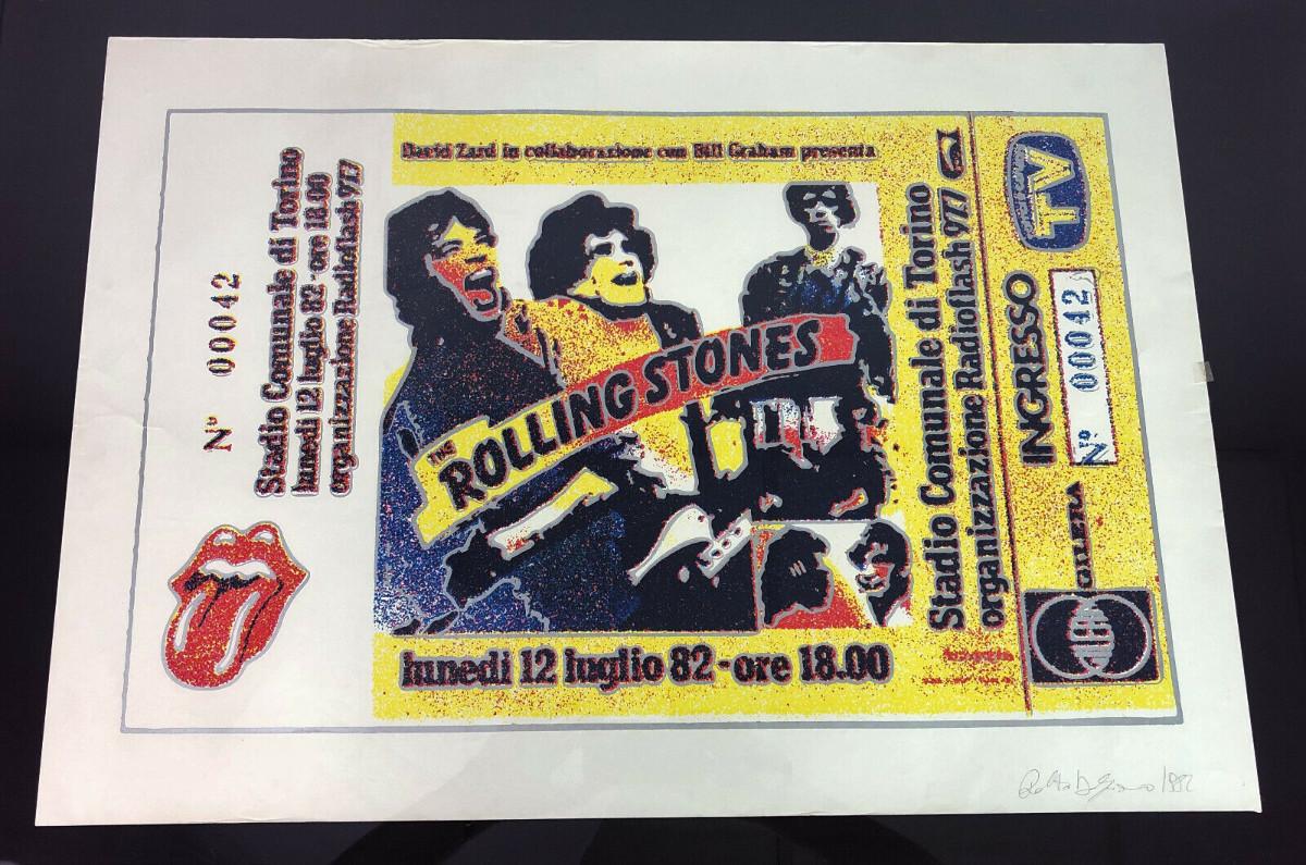ROLLING STONES SILKSCREEN SHOW POSTER TORINO ITALY 1982 ARTIST SIGNED