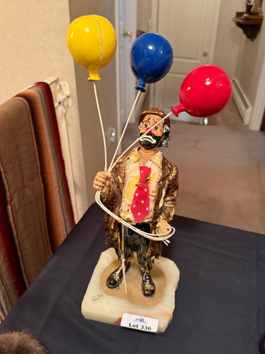 Large Ron Lee clown with 3 balloons on Stone Base 20”t