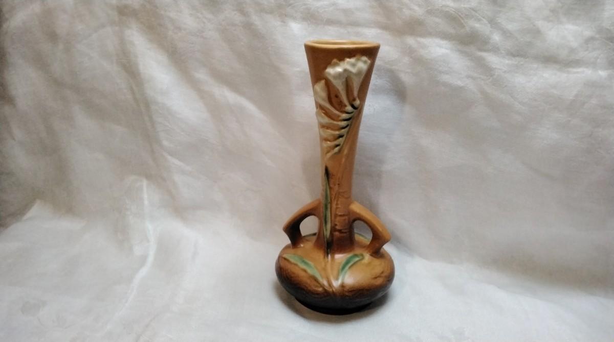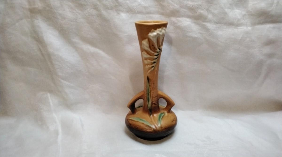 Roseville Freesia Tangerine Long Necked Bud Vase #195-7