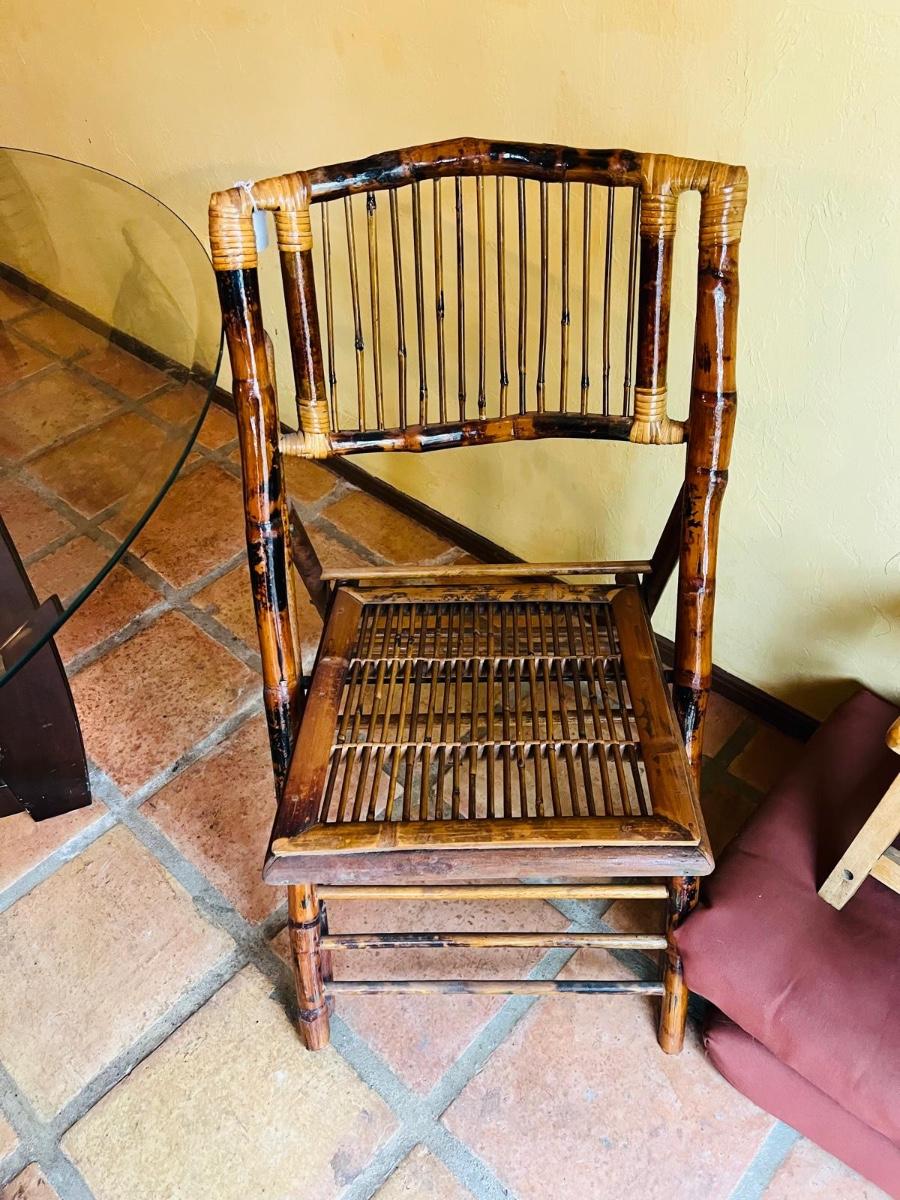 Each chair is made out of bamboo and can be folded.