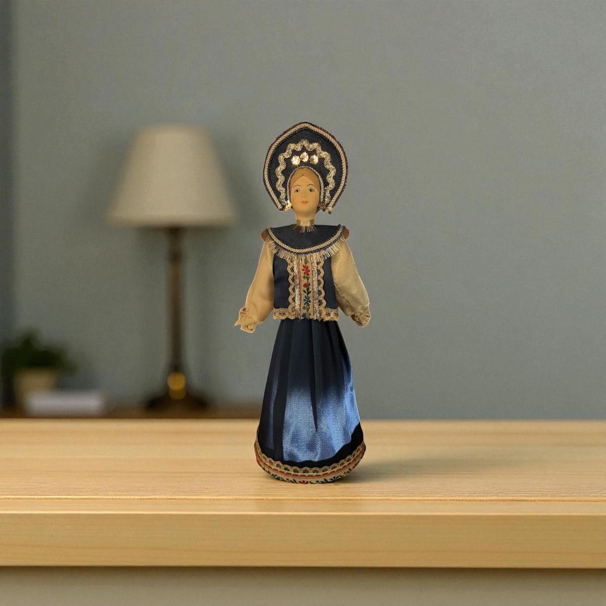 Russian doll souvenir with traditional Russian attire. Souvenir while visit Russia. Made in Russia.