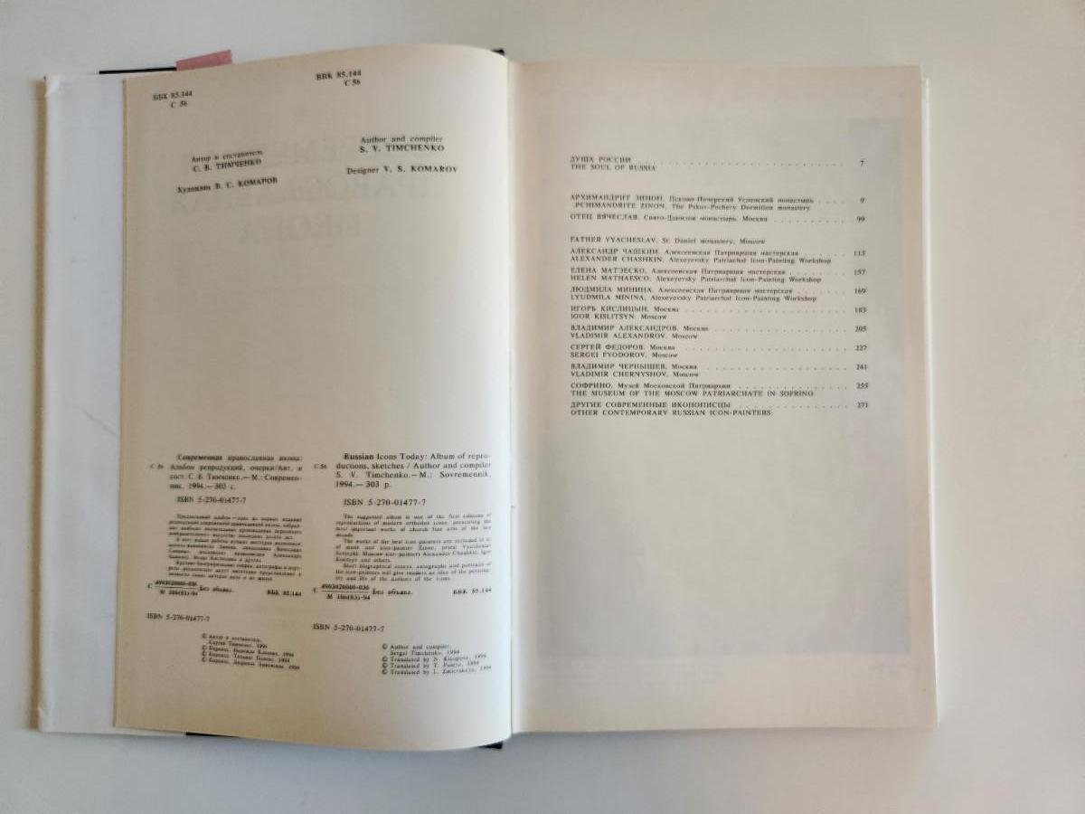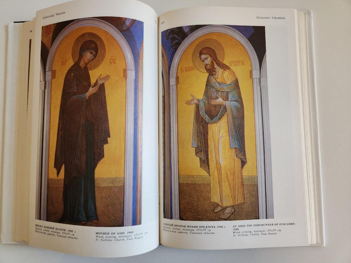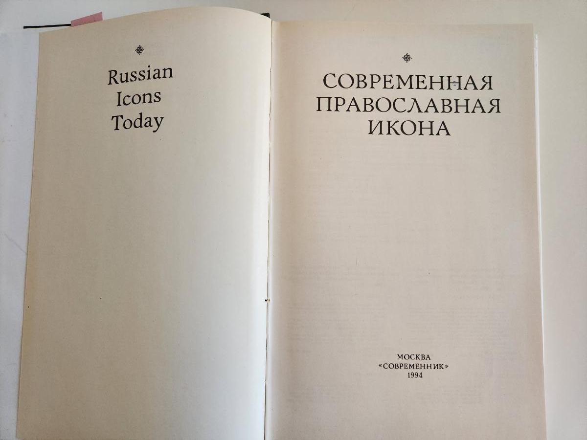 This auction lot is for a book entitled Russian Icons Today. The book is printed in both Russian and English. It looks at a collection of amazing Icons and explains much about them.. This hard bound book was published in 1994 by a Russian publisher. The book is in very good condition, the dust cover has some minor ruffling on the edges. 305 pages with many color plates.