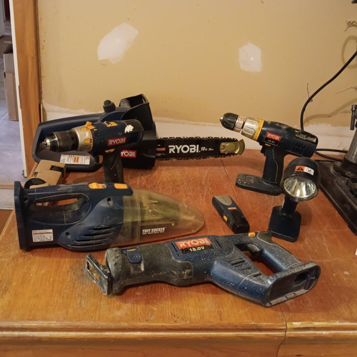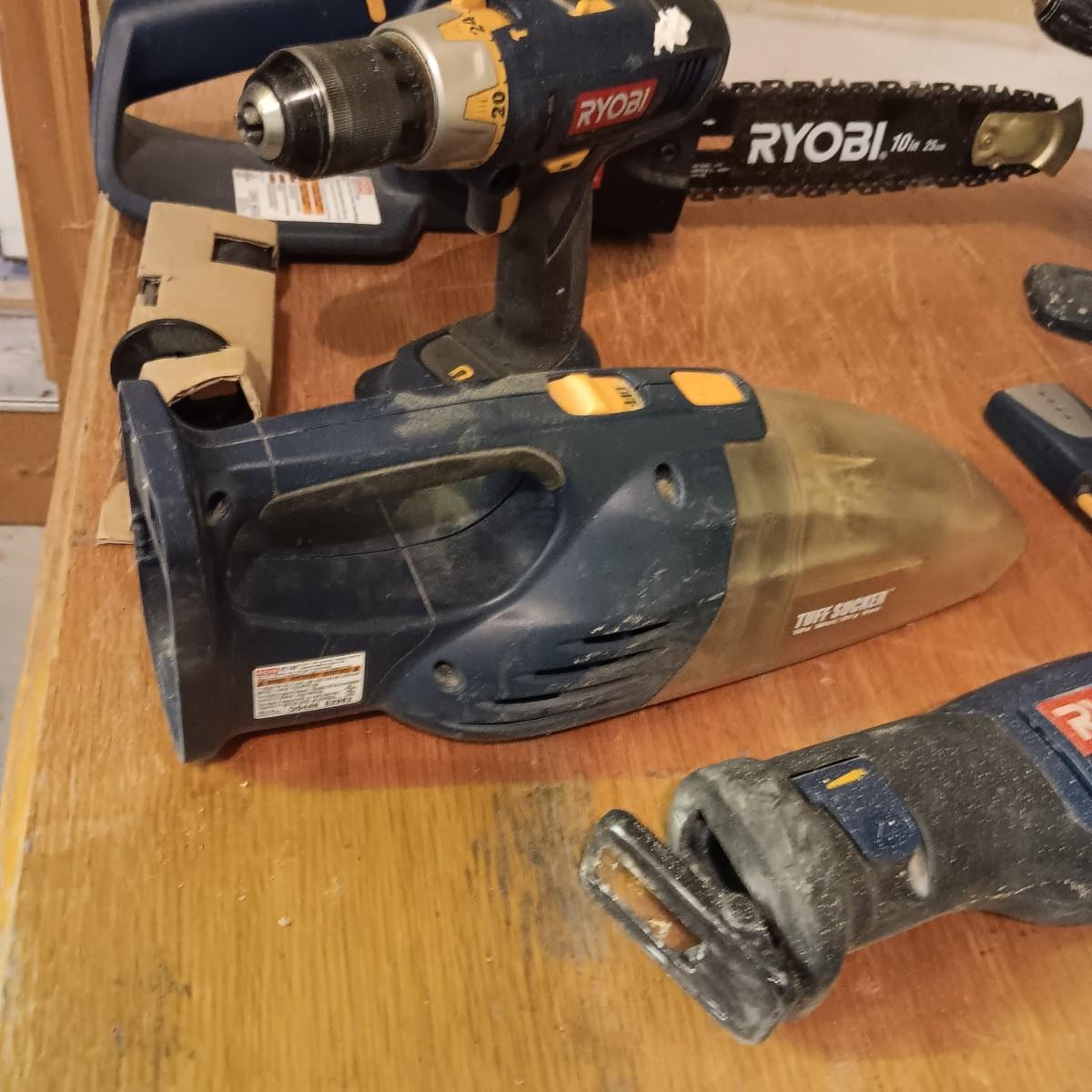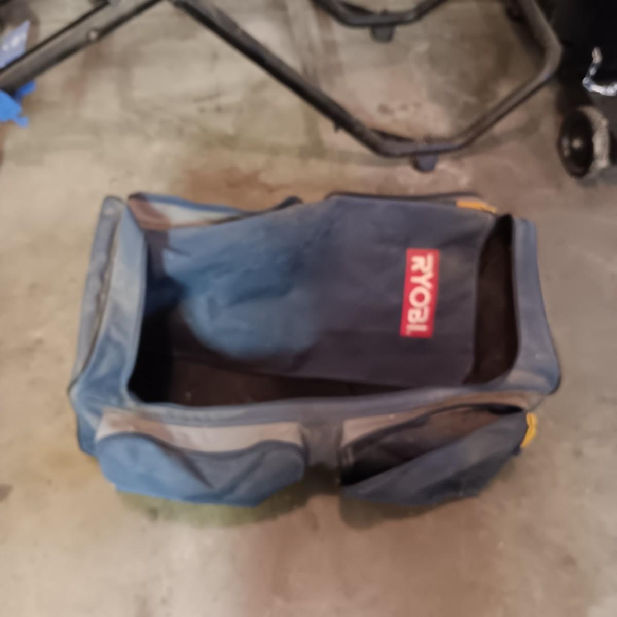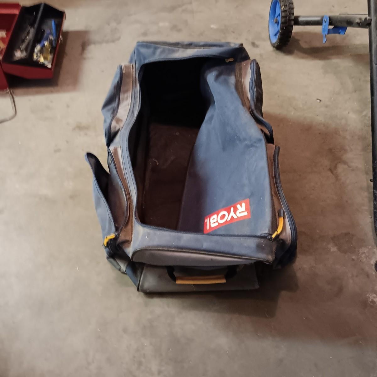 RYOBI CORDLESS TOOL SET WITH BAG ON WHEELS (NO BATTERIES OR CHARGER)