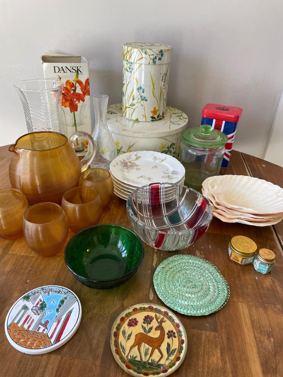 Dansk vase, Amber ribbed pitcher w/glasses & more!