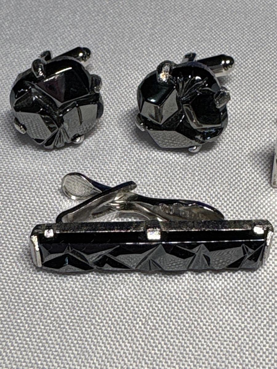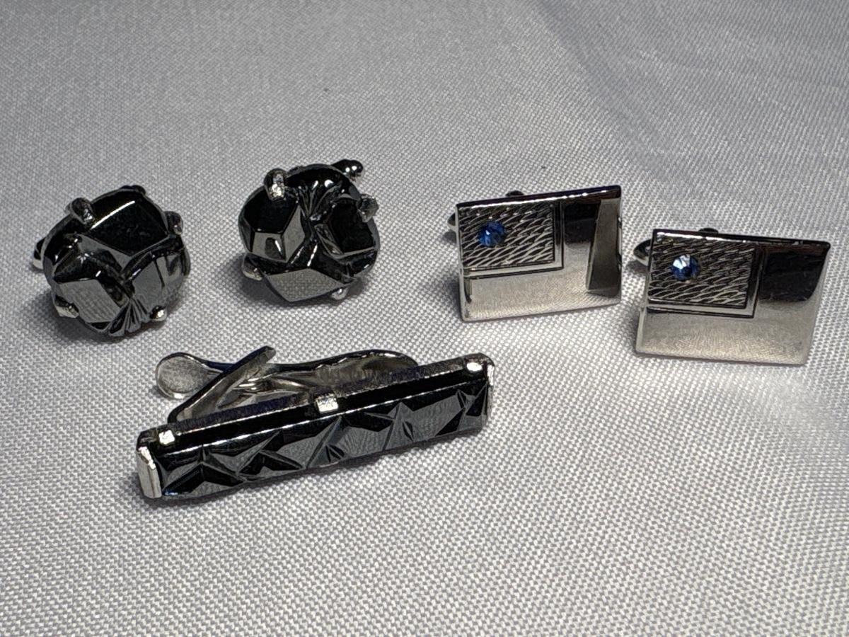 Sarah Coventry tie bar & cuff links plus silver cuff links