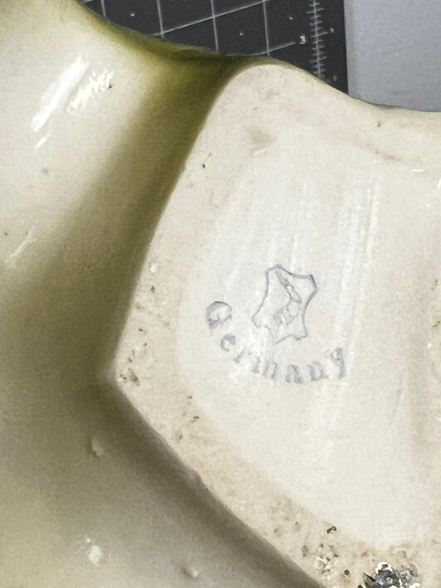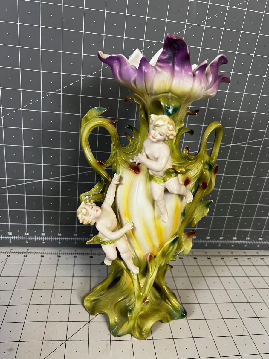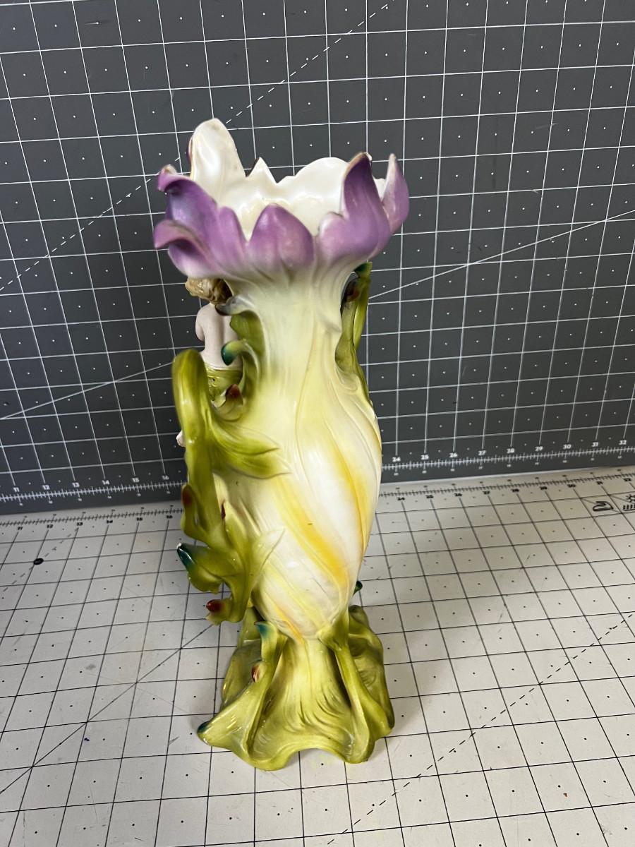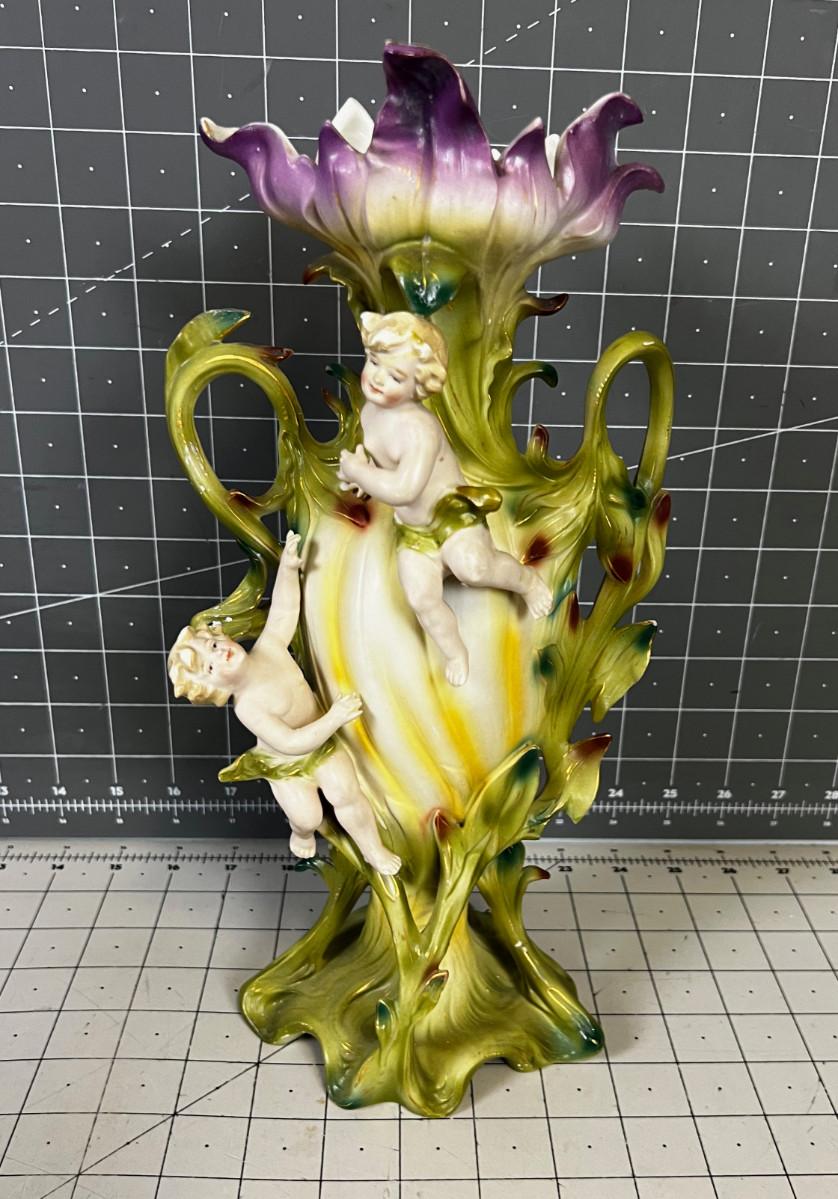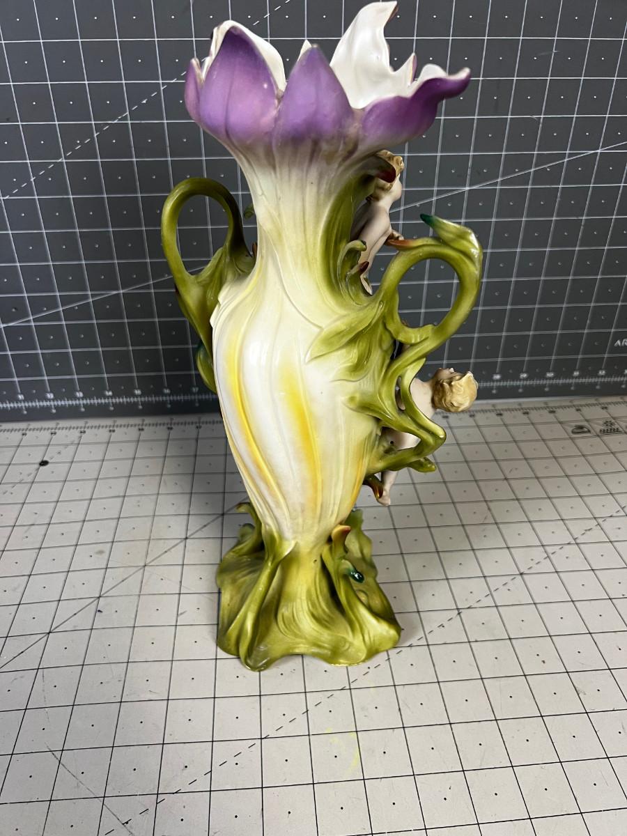SAXONY ART Nouveau Cherub Vase, Green and Purple