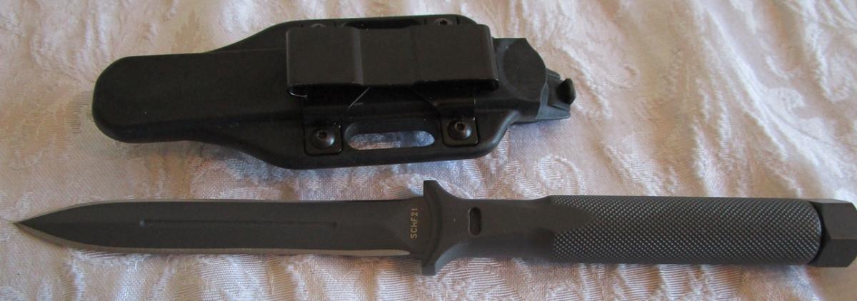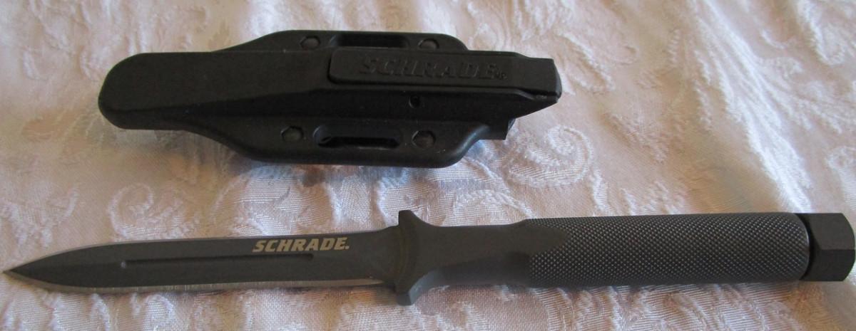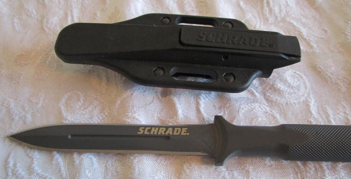 Schrade 1-piece, deep-forged, double-edged knife with hard plastic belt sheath