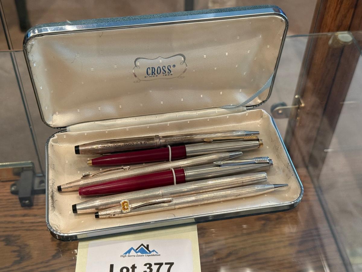Selection of 6 Cross Writing Pens - some Sterling & Clamshell Box