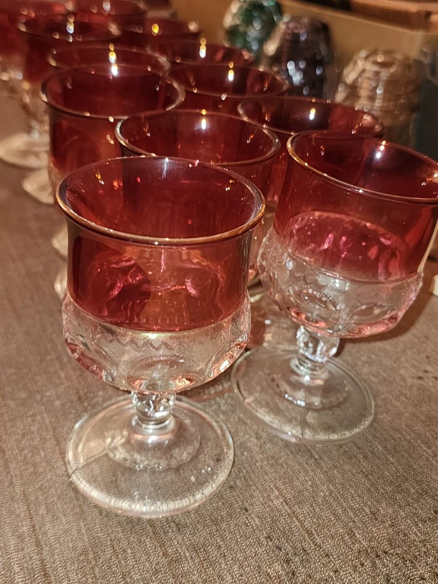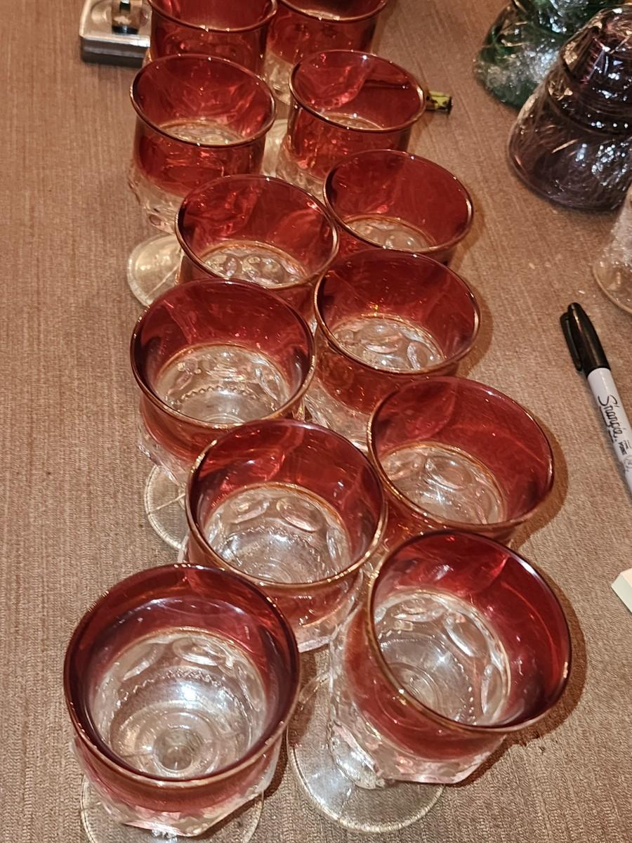 Set of 12 Cranberry glass mini goblets.