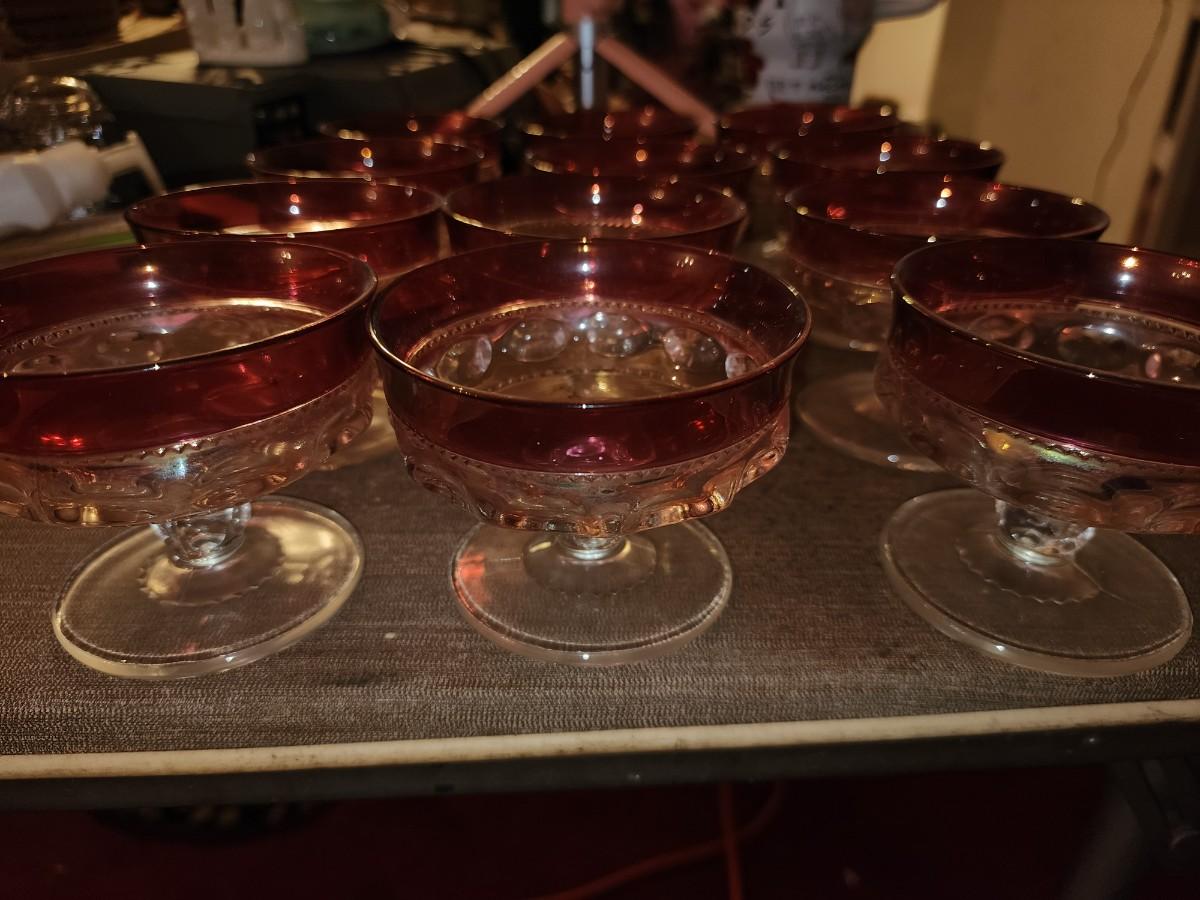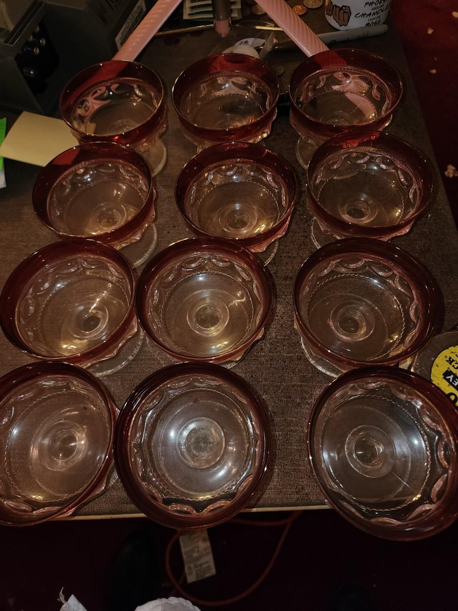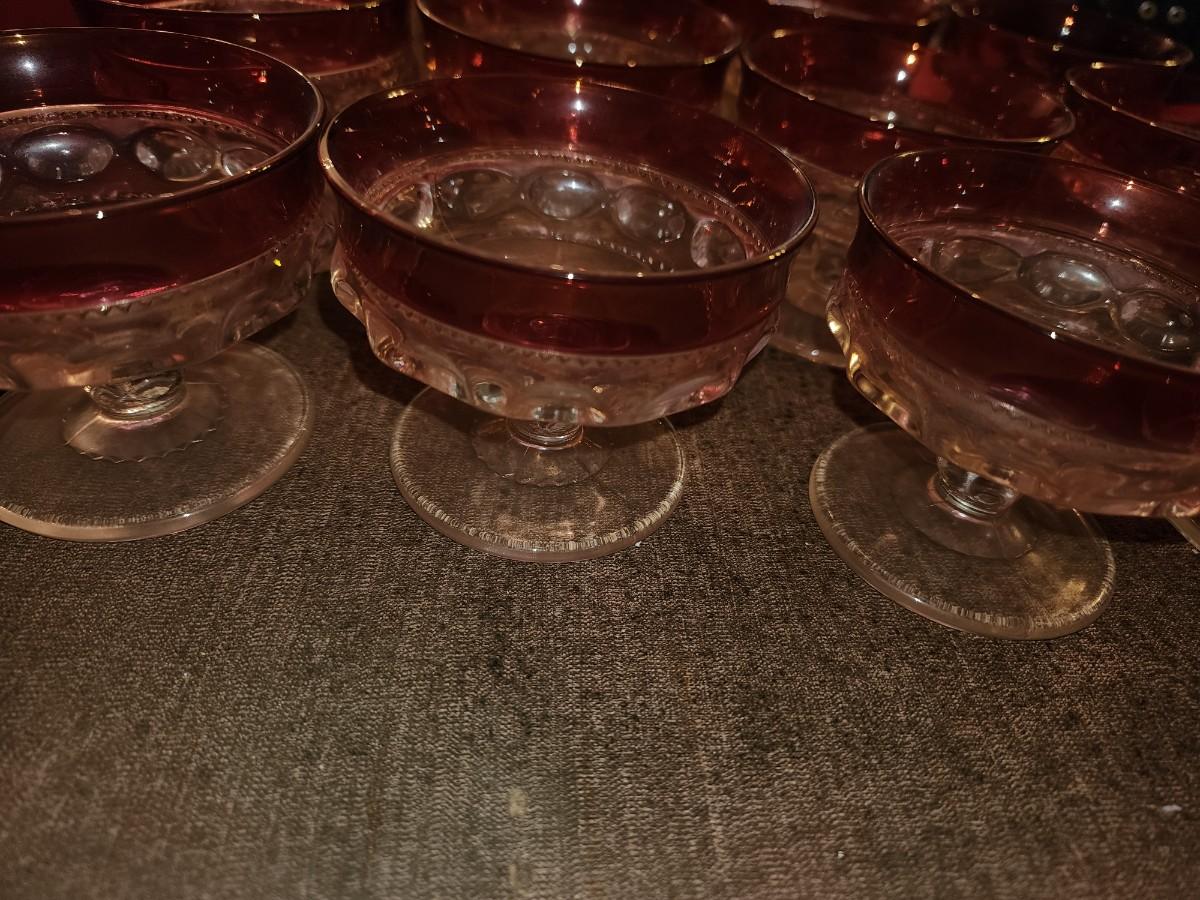 Set of 12 Cranberry glass desert glasses.