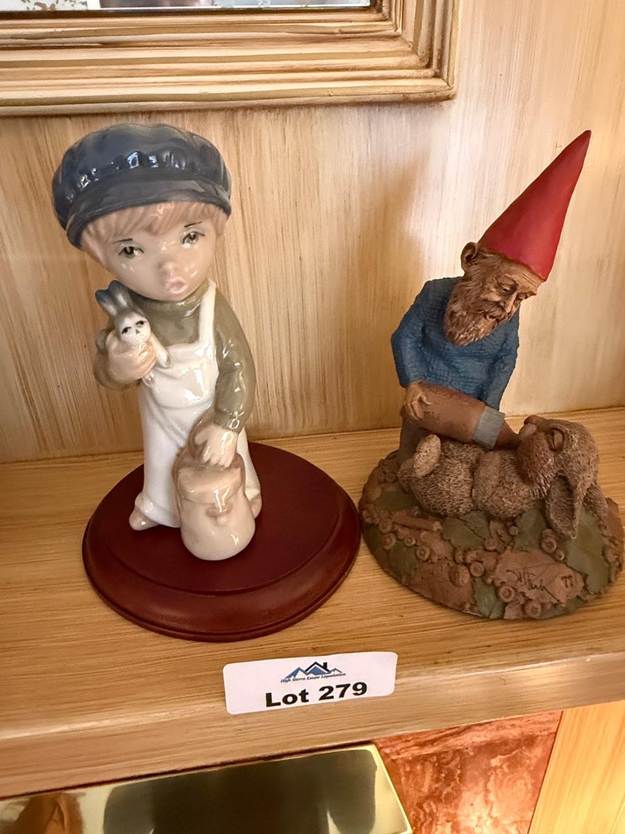 Set of 2 decorative figurines - Boy with Rabbit & Gnome