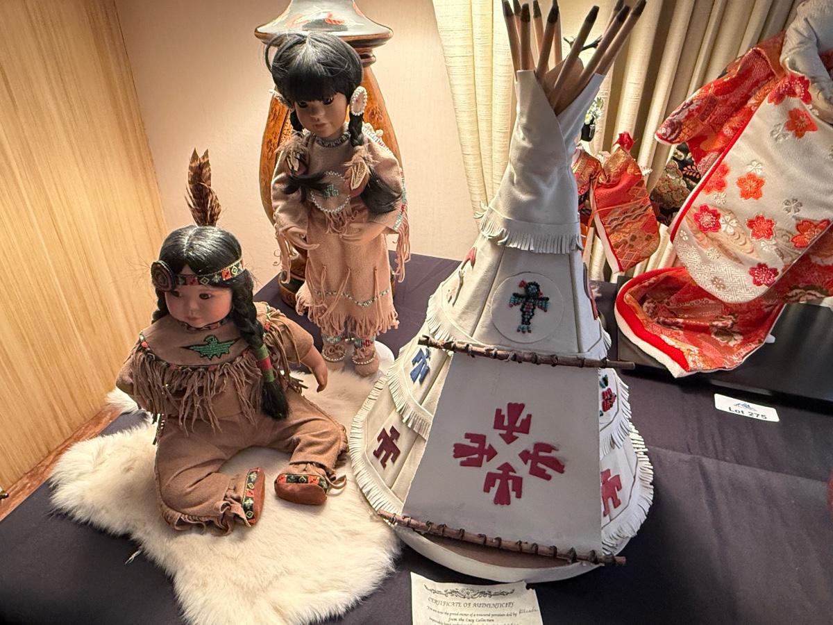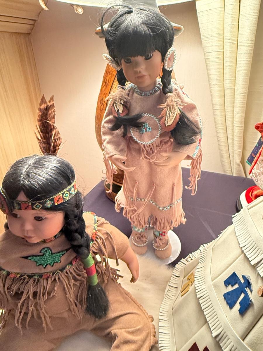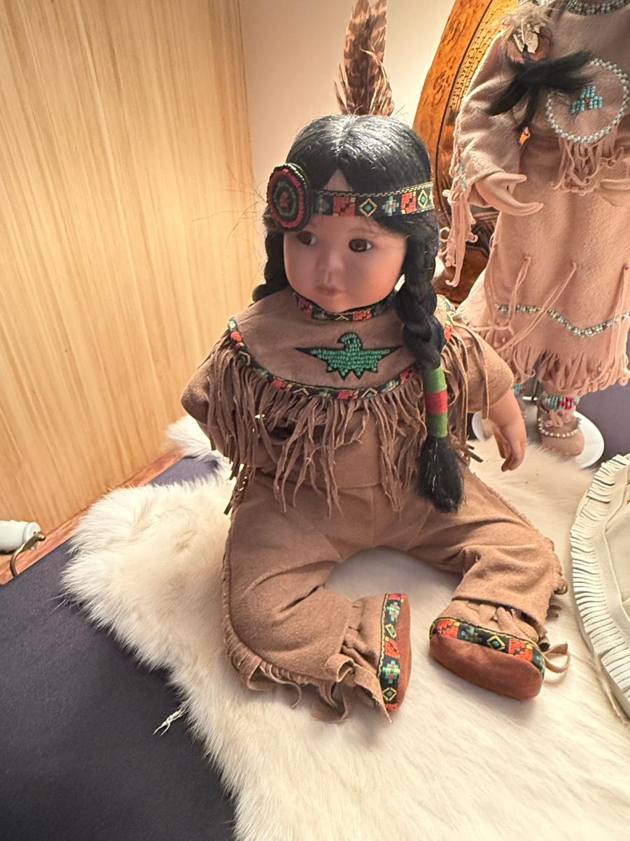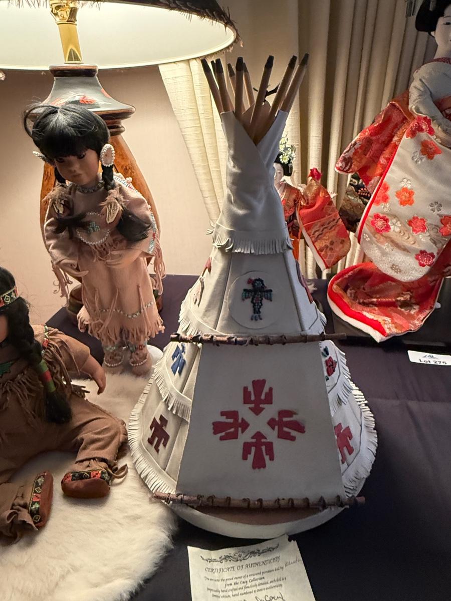 Set of 3 Native American Pcs. TeePee & 2 dolls (box for 1) + white fur piece