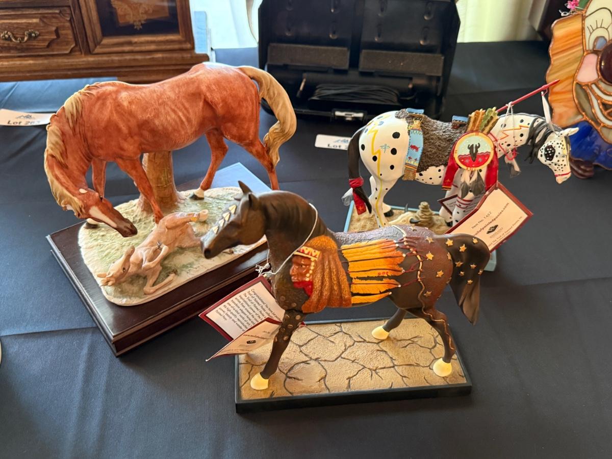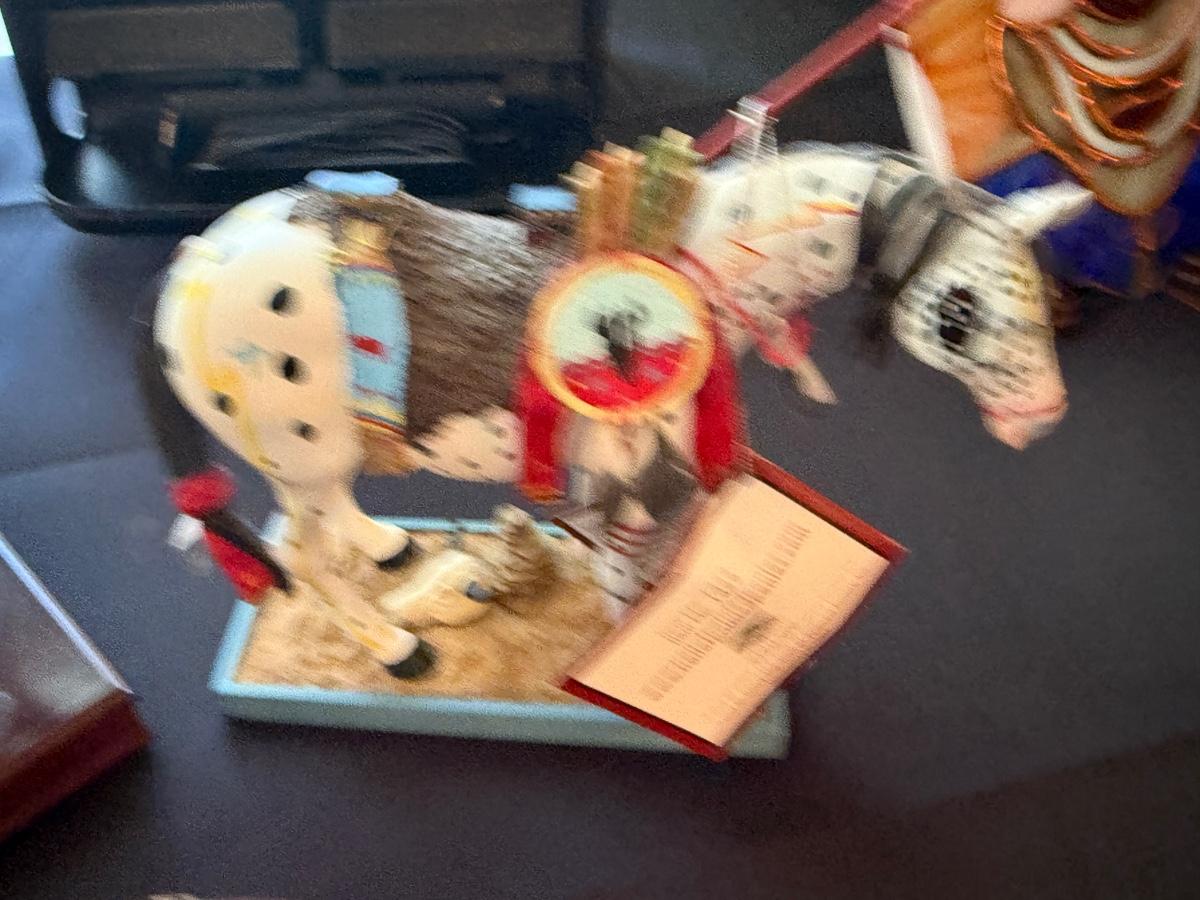 Set of 3 Trail of Painted Ponies horse figures on stands