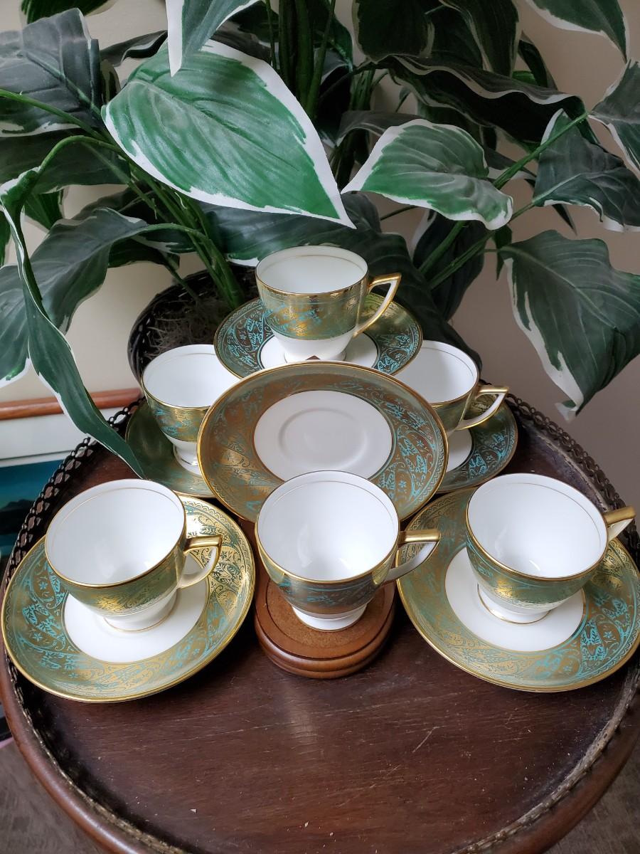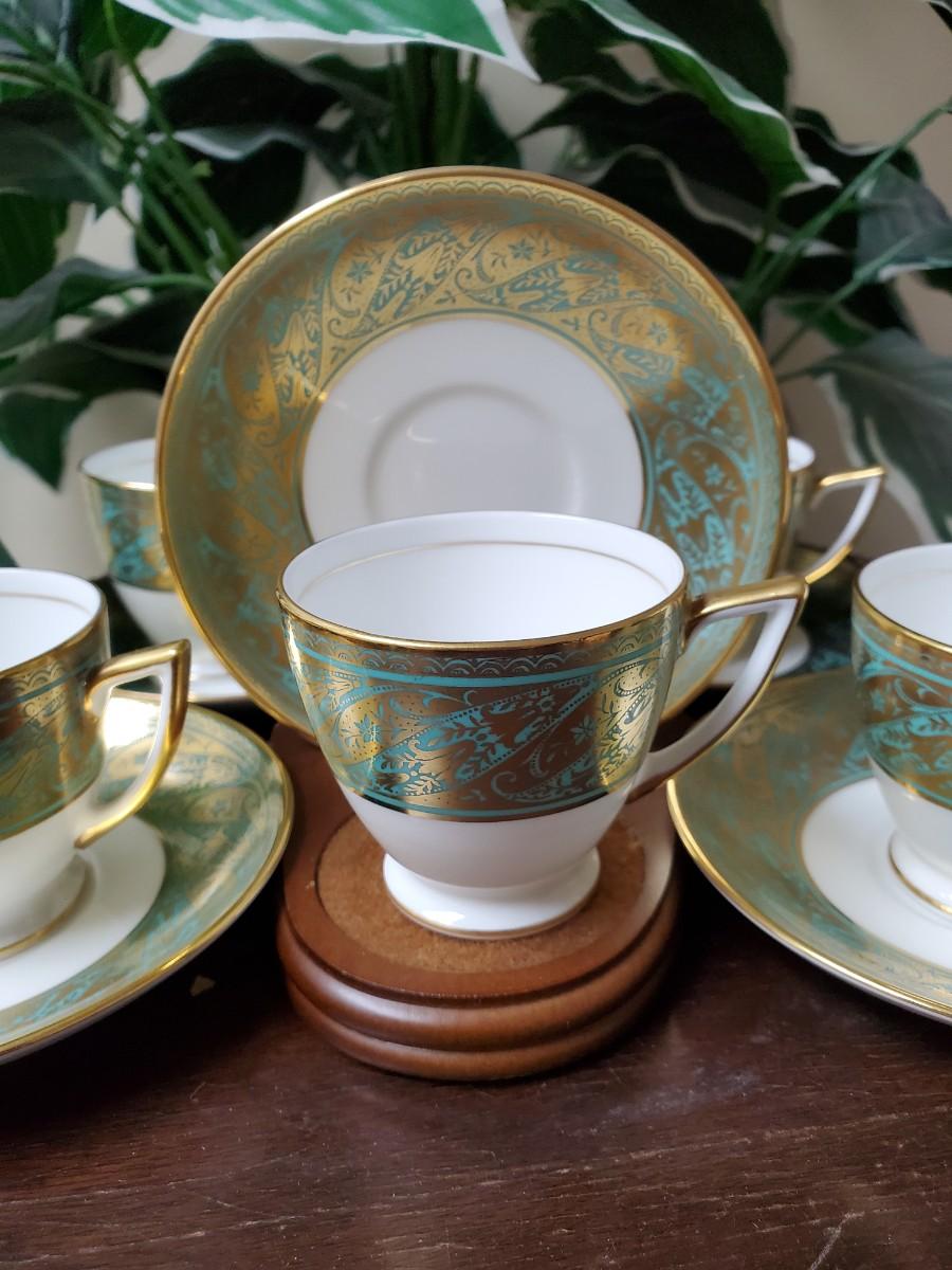 Set of 6 demitasse espresso cups with saucers. Vintage Minton brand bone china, made in England.