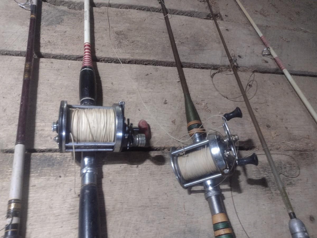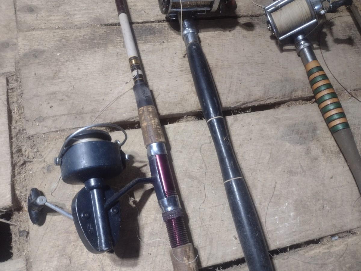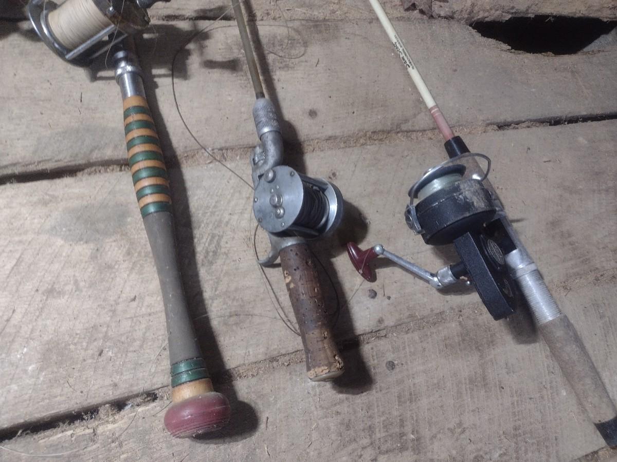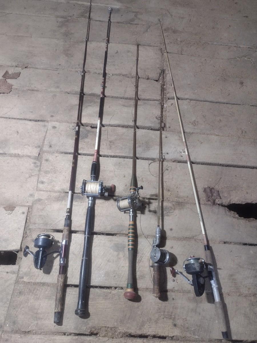 Set of Five Fishing Poles with Open Face and Bait Cast Reels