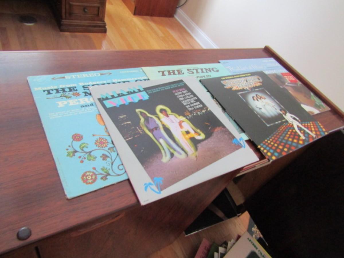 Set of Five Vinyl LP's Classic Movie/TV Soundtracks includes Saturday Night Fever, Miami Vice, Breakfast at Tiffany's