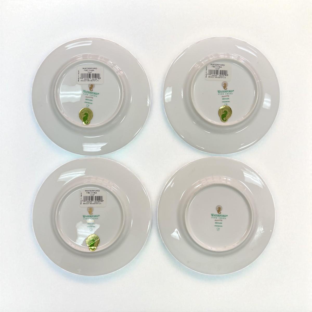Set of Four Waterford Brocade Bread and Butter Plates. Still have stickers on the plates.