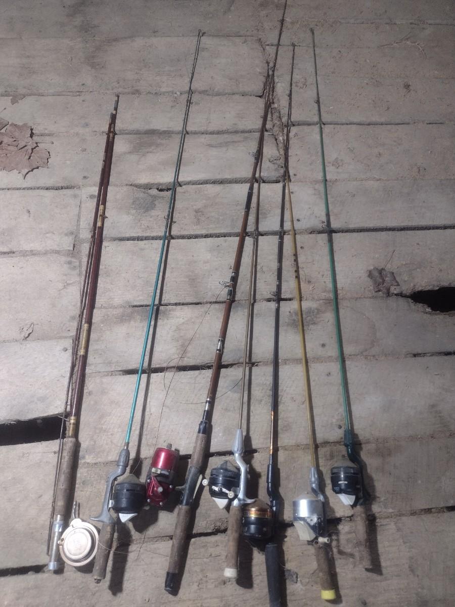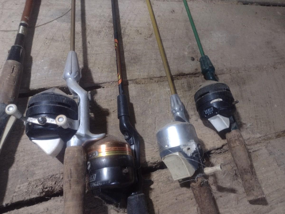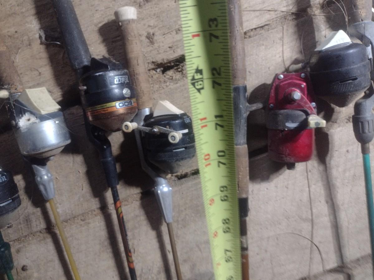 Set of Seven Fishing Poles with Closed Face Reels Zebco and Other