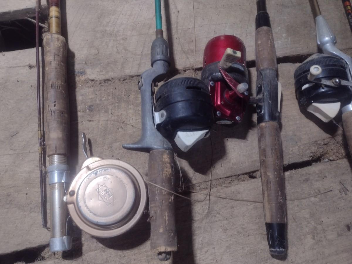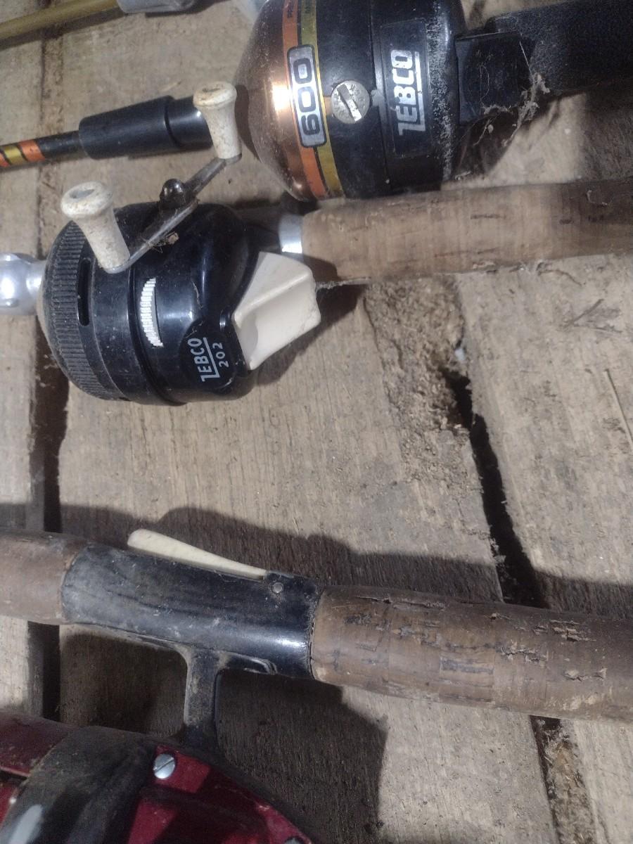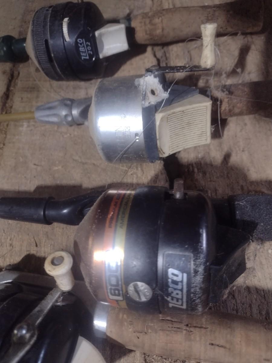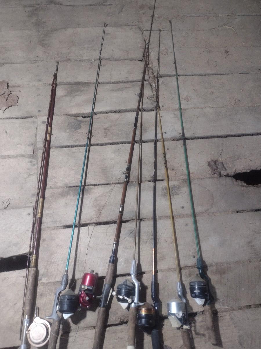 Set of Seven Fishing Poles with Closed Face Reels Zebco and Other