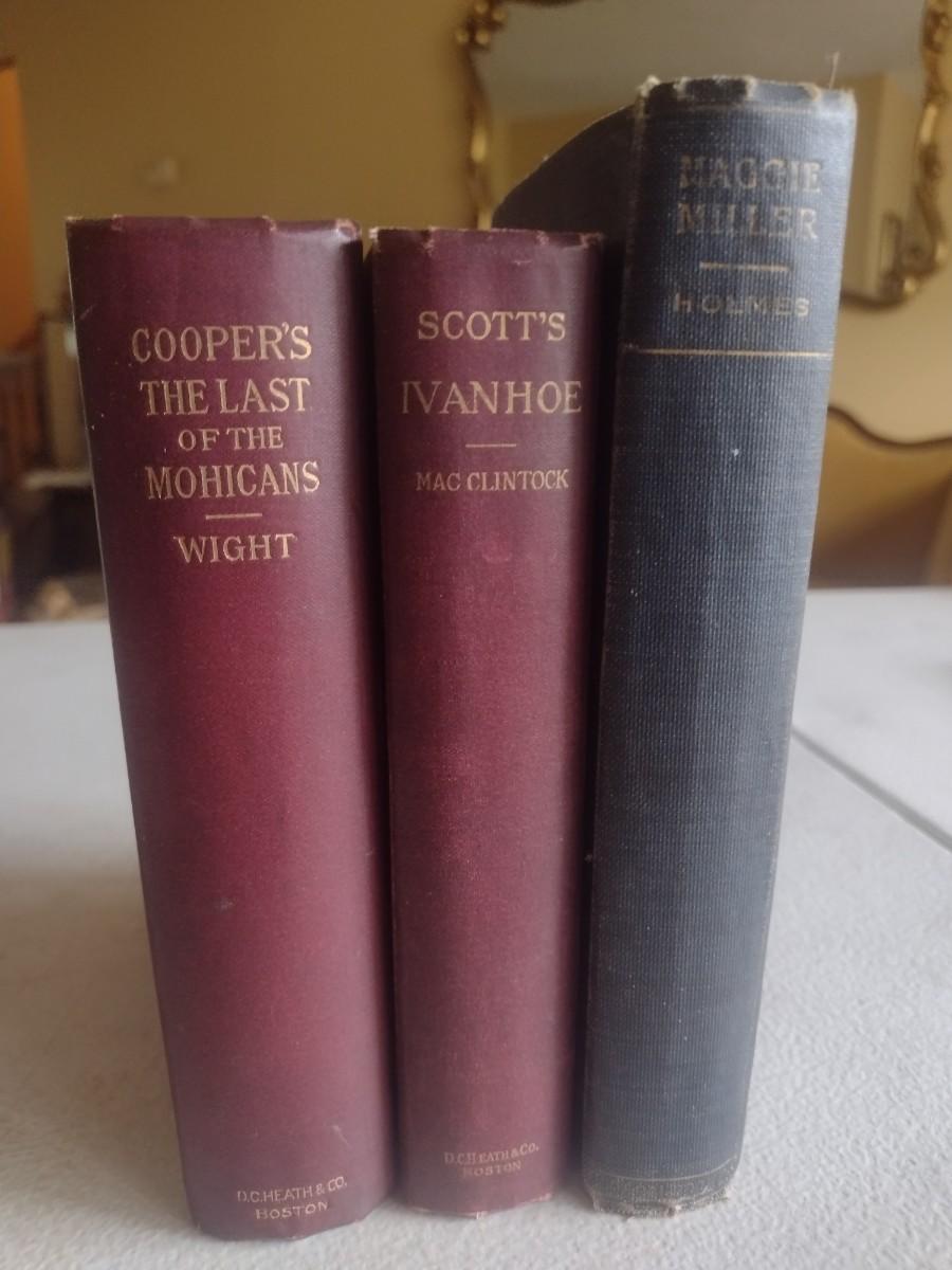 Set of Three Antique Classic Books 'Last of the Mohicans' 1901, 'Ivanhoe' 1905, and 'Maggie Miller' Undated