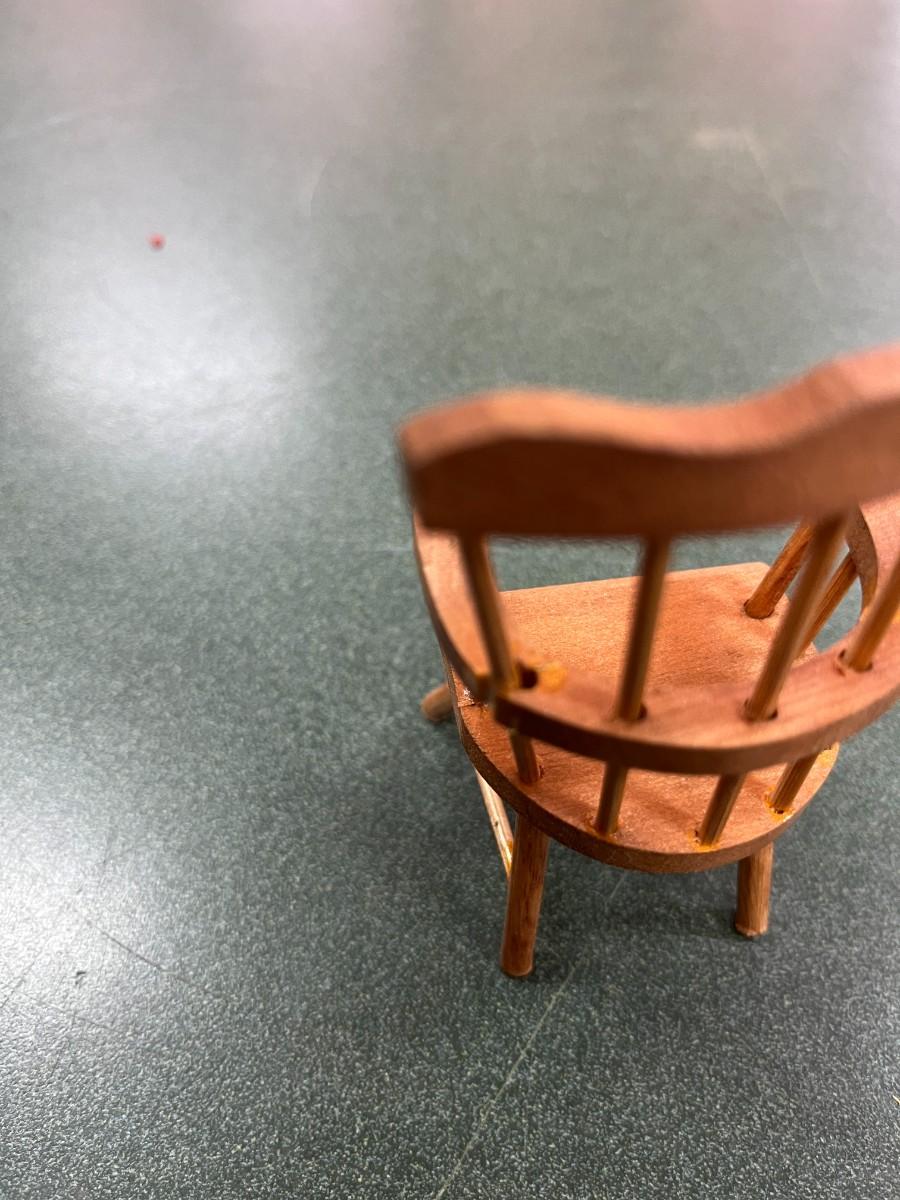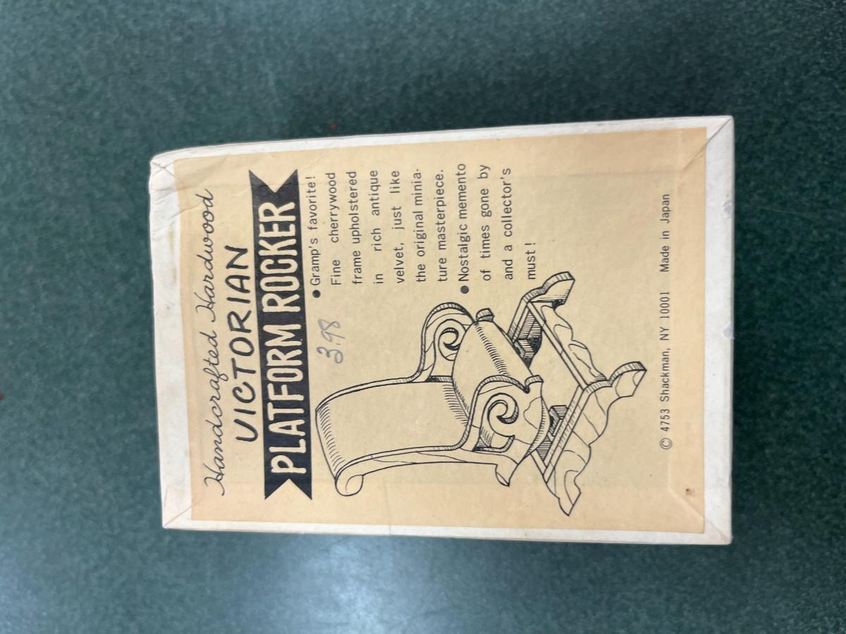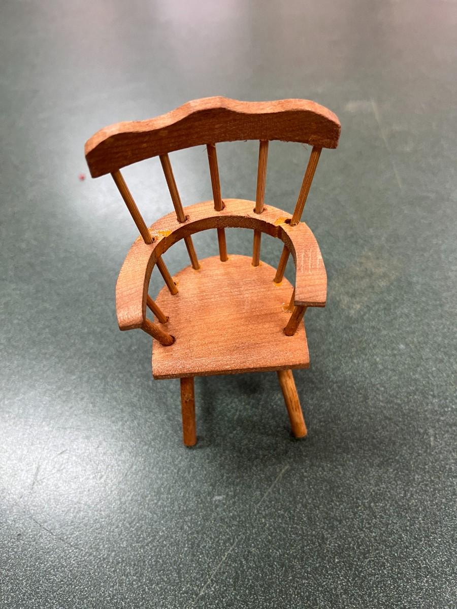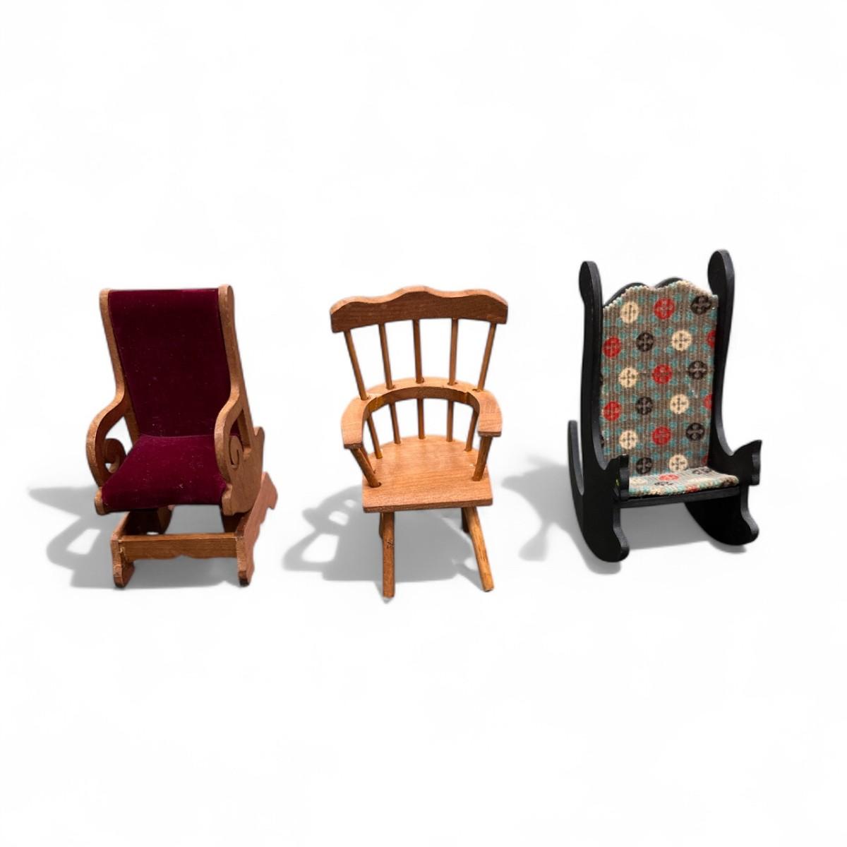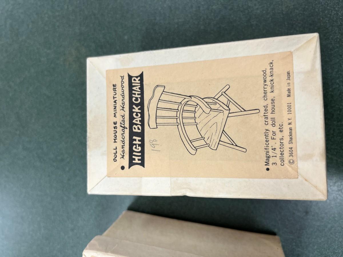 Set Of Three Dollhouse Furniture Chairs. Includes box for two of the chairs. Windsor chair has been broken and repaired