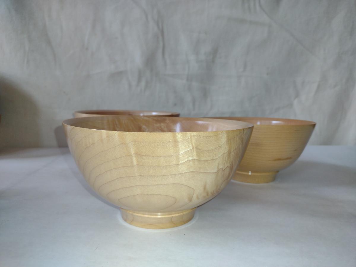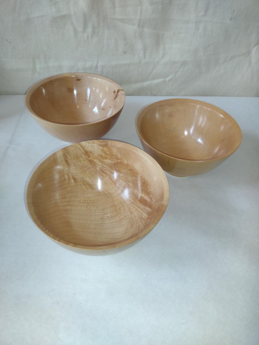 Set of Three Hand Crafted, Turned Wood Bowls by Bobby Phillips- Maple (#12).