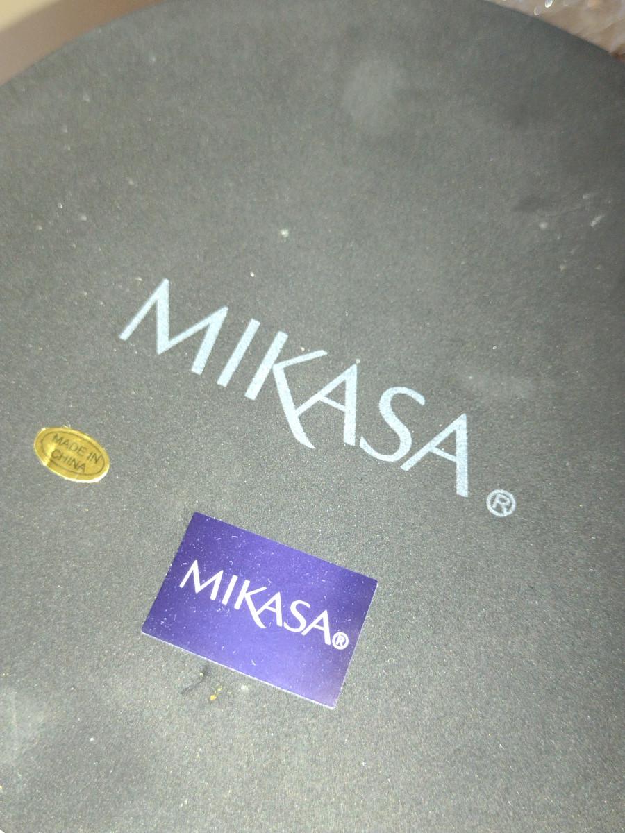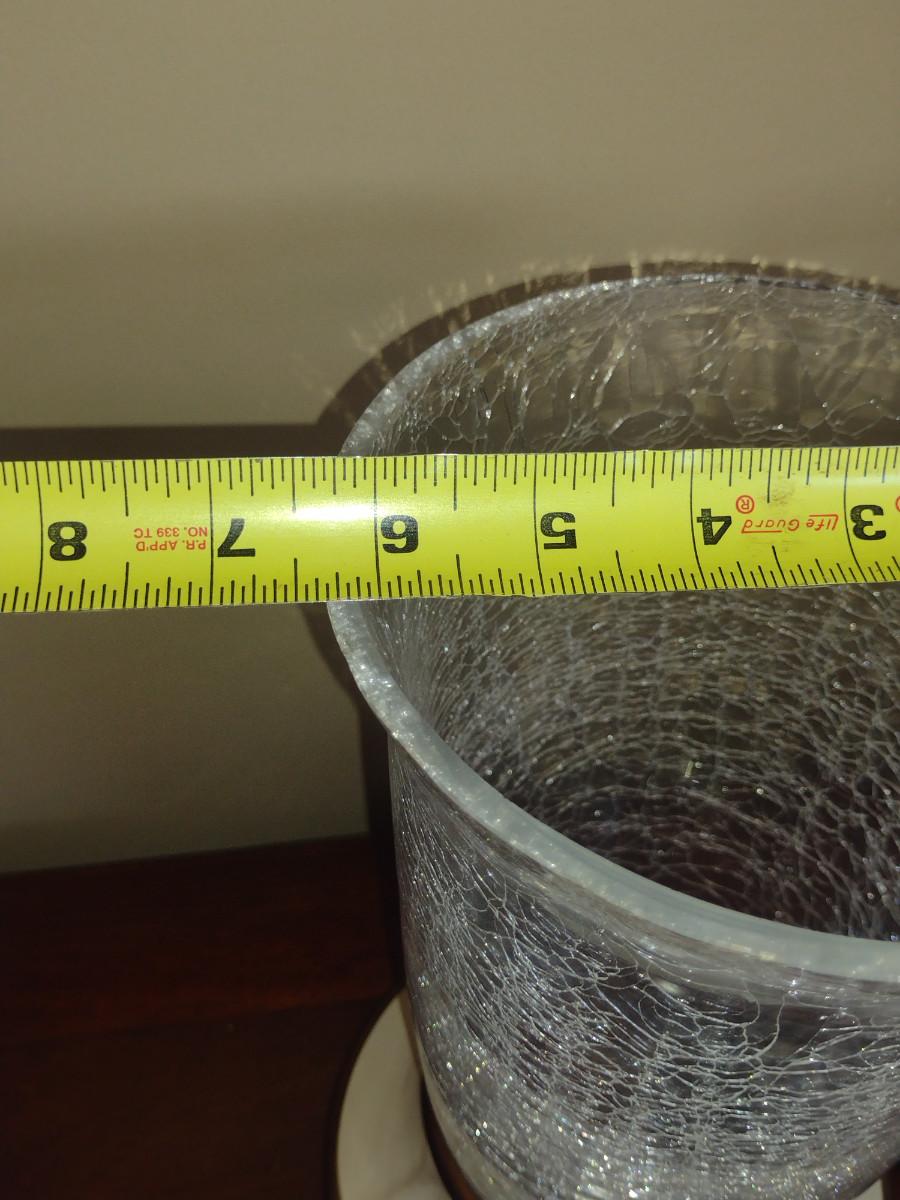 Set of Three Mikasa Crackle Glass Hurricane Candle Holders. One still has box.
