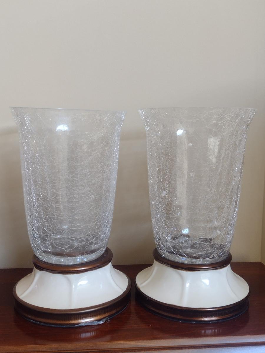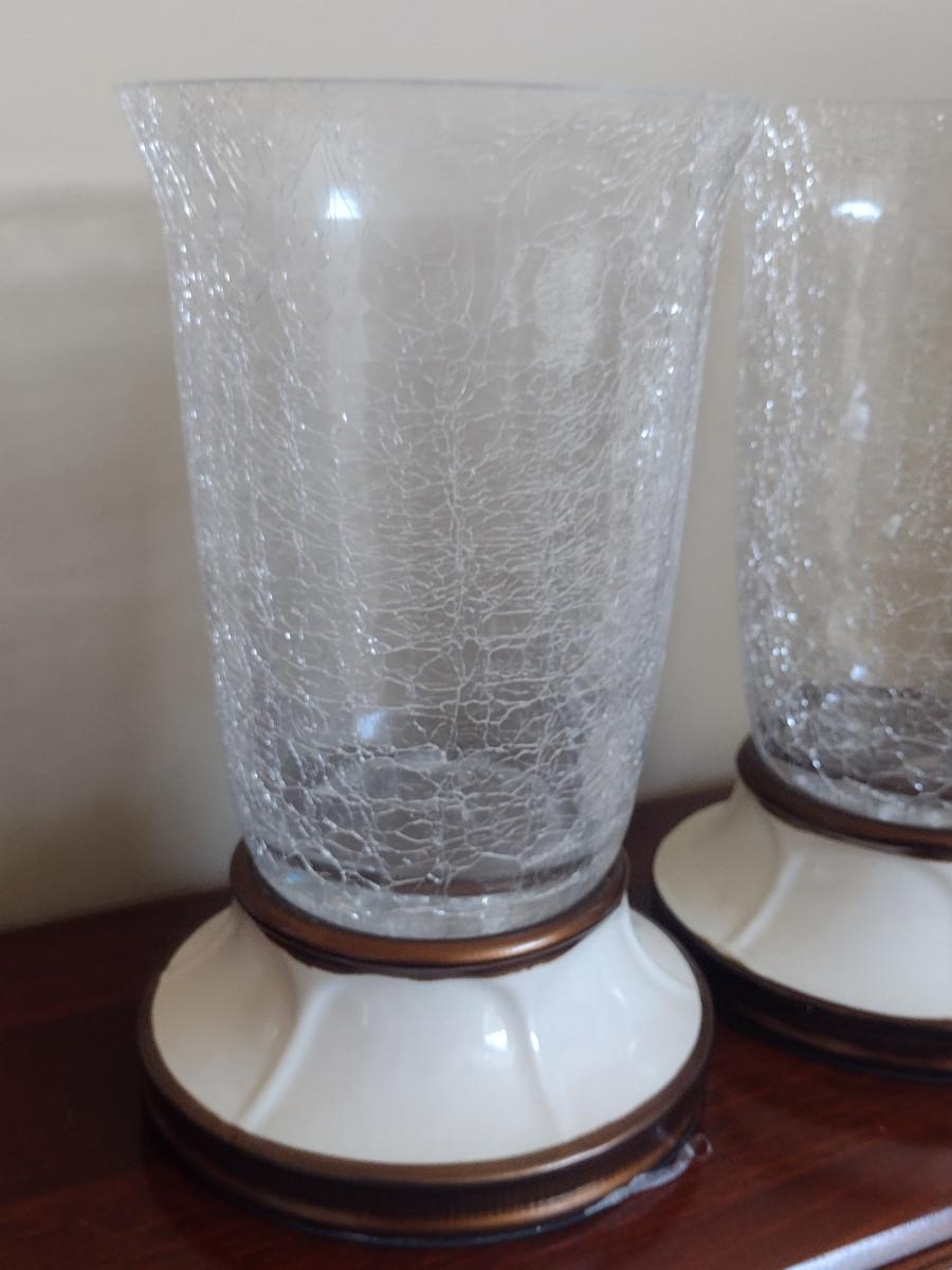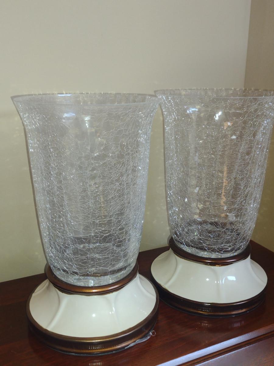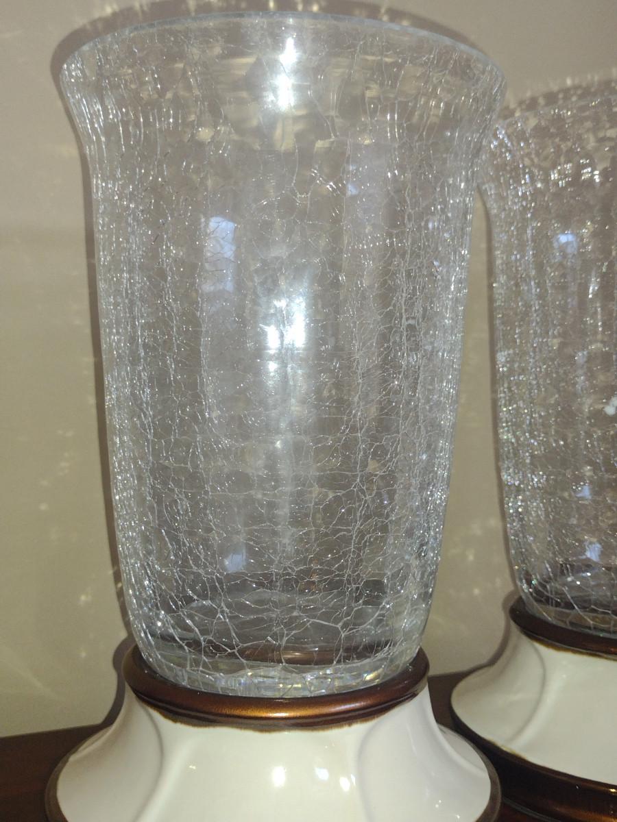 Set of Three Mikasa Crackle Glass Hurricane Candle Holders