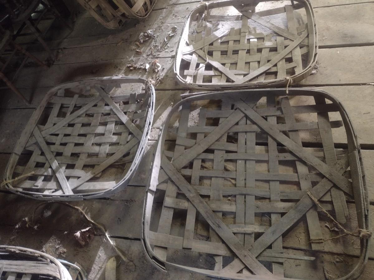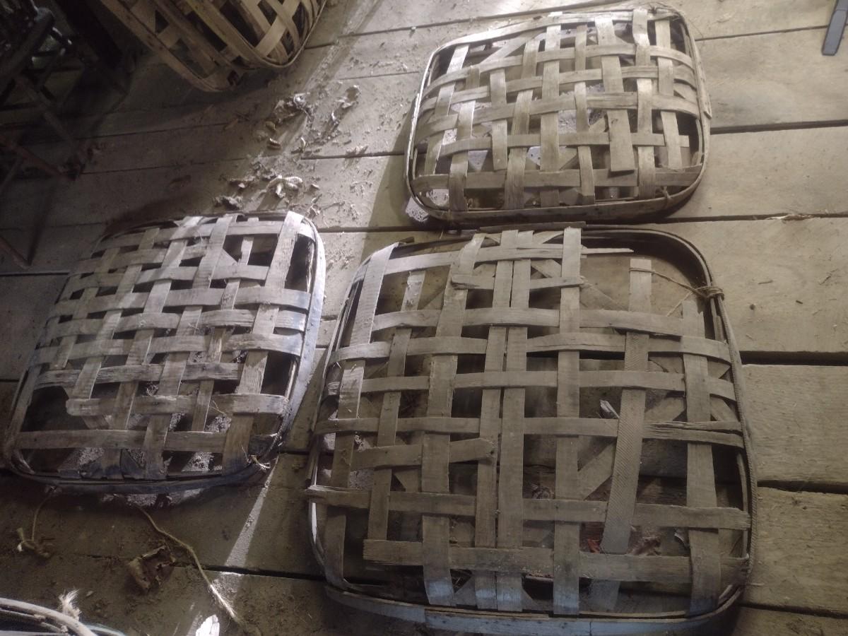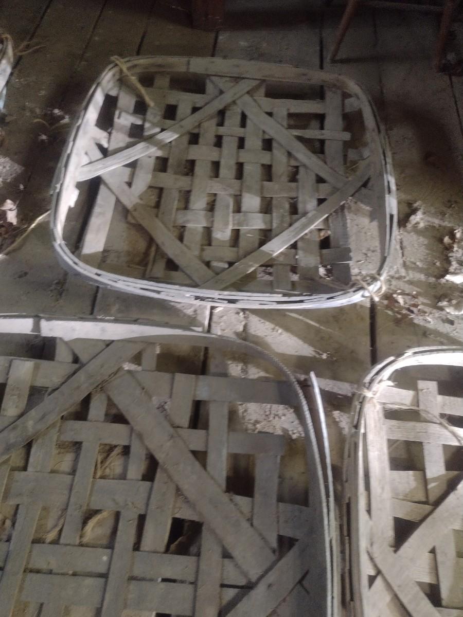 Vintage Authentic Splint Wood Tobacco Leaf Market Baskets (II). Sizes of each basket will vary. The baskets are all in used condition and will have broken slats, missing pieces, stains, etc. Sold as is.