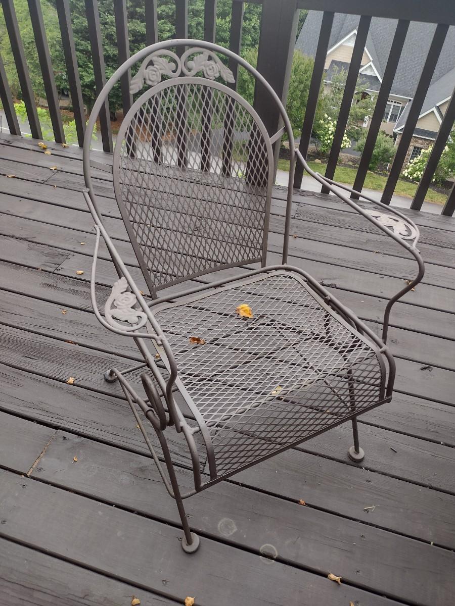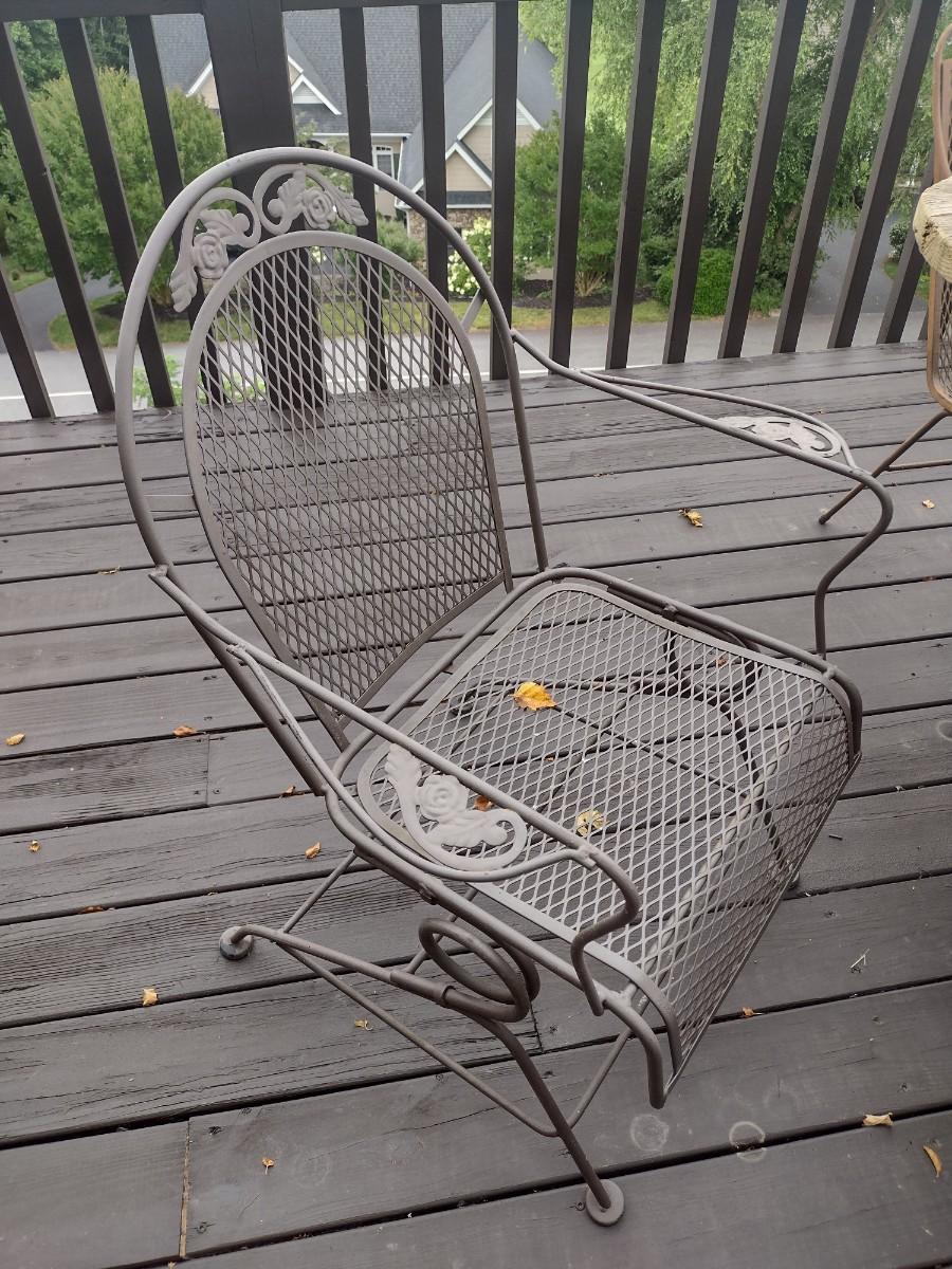 Set of Two Wrought Metal Rocker Style Garden Chairs