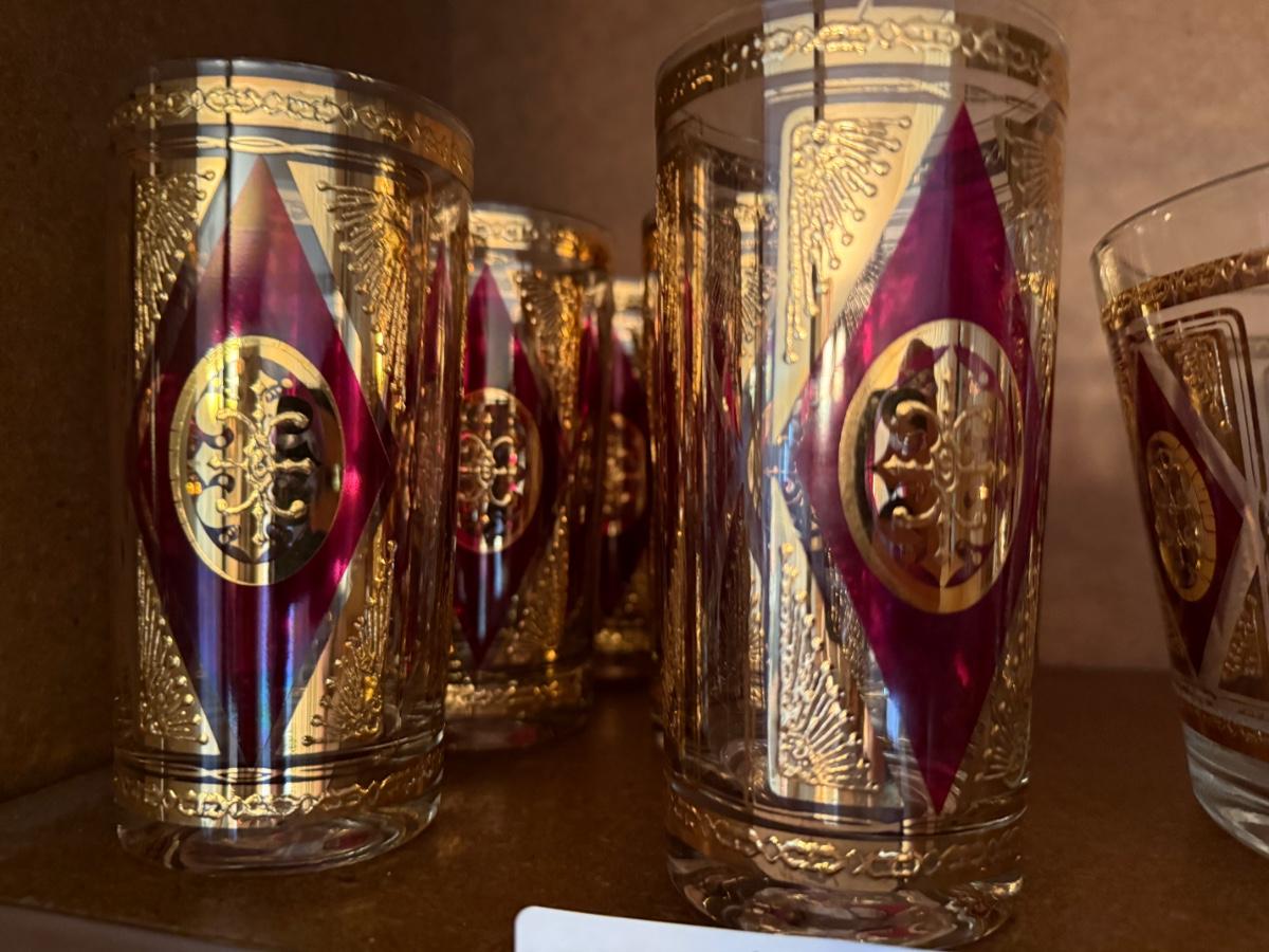 Set of Vintage Red & Gold Ice Bucket & matching glasses