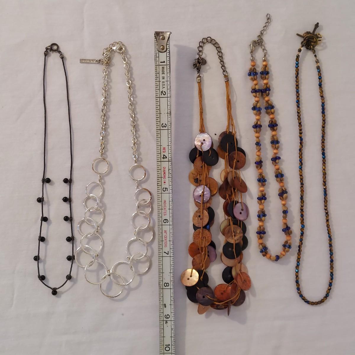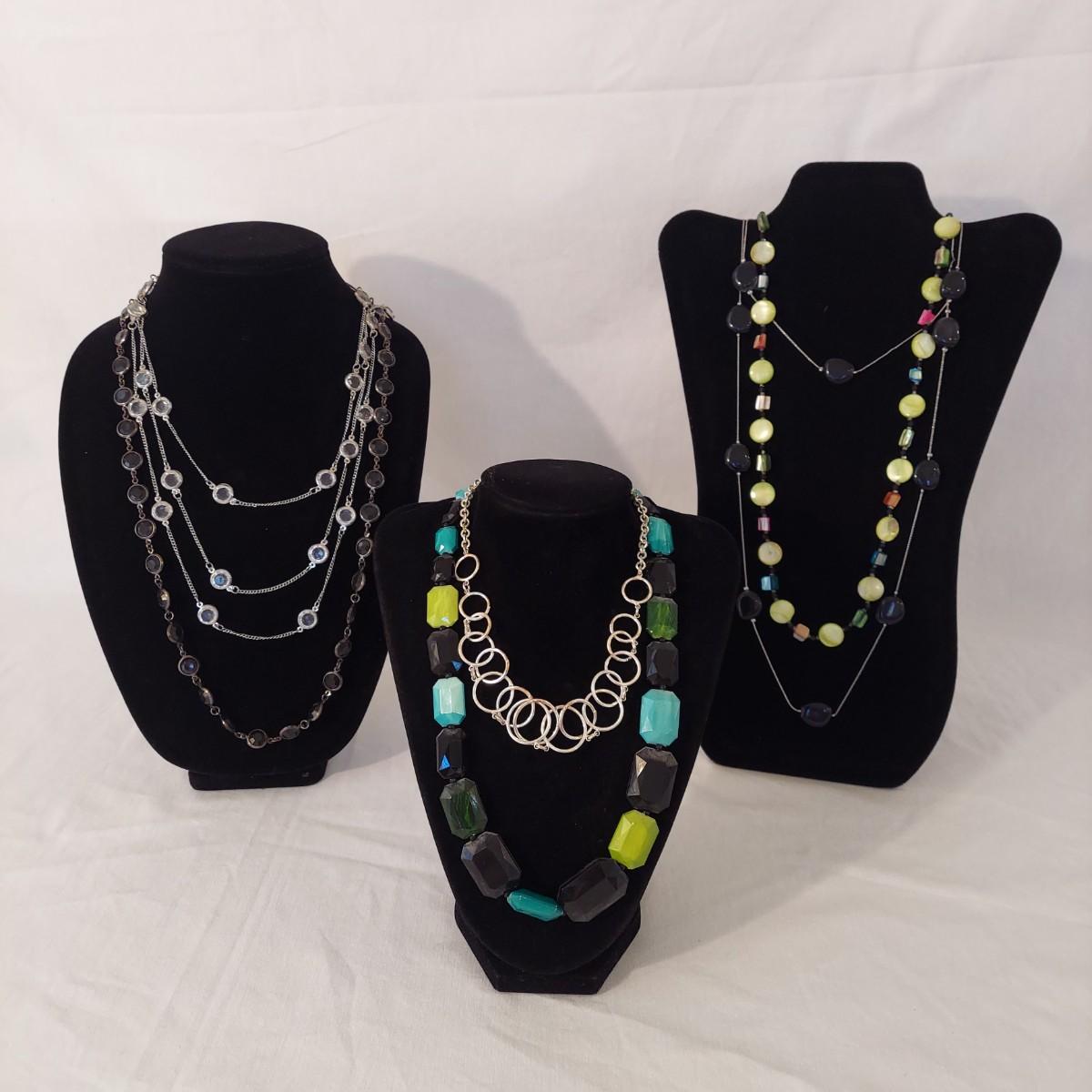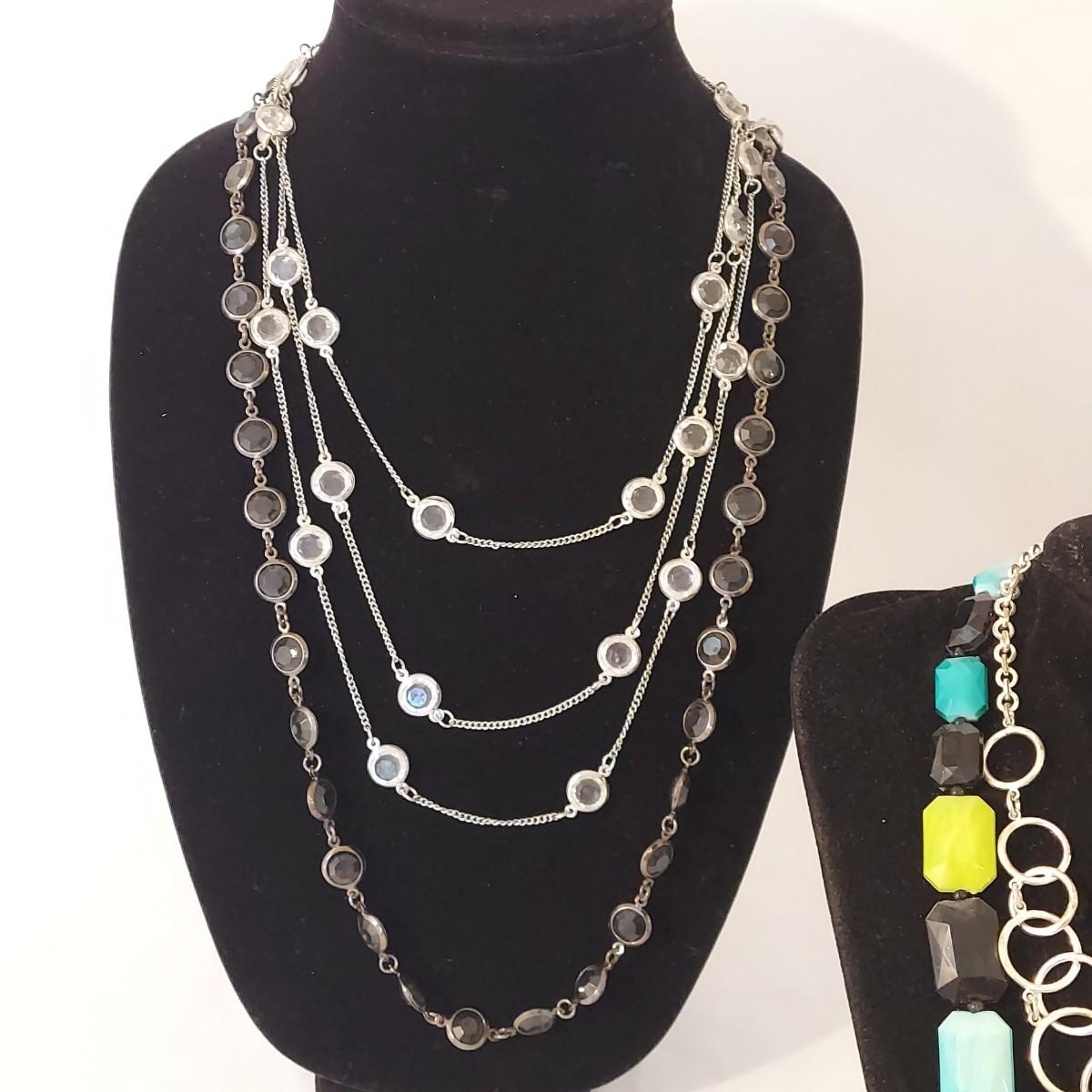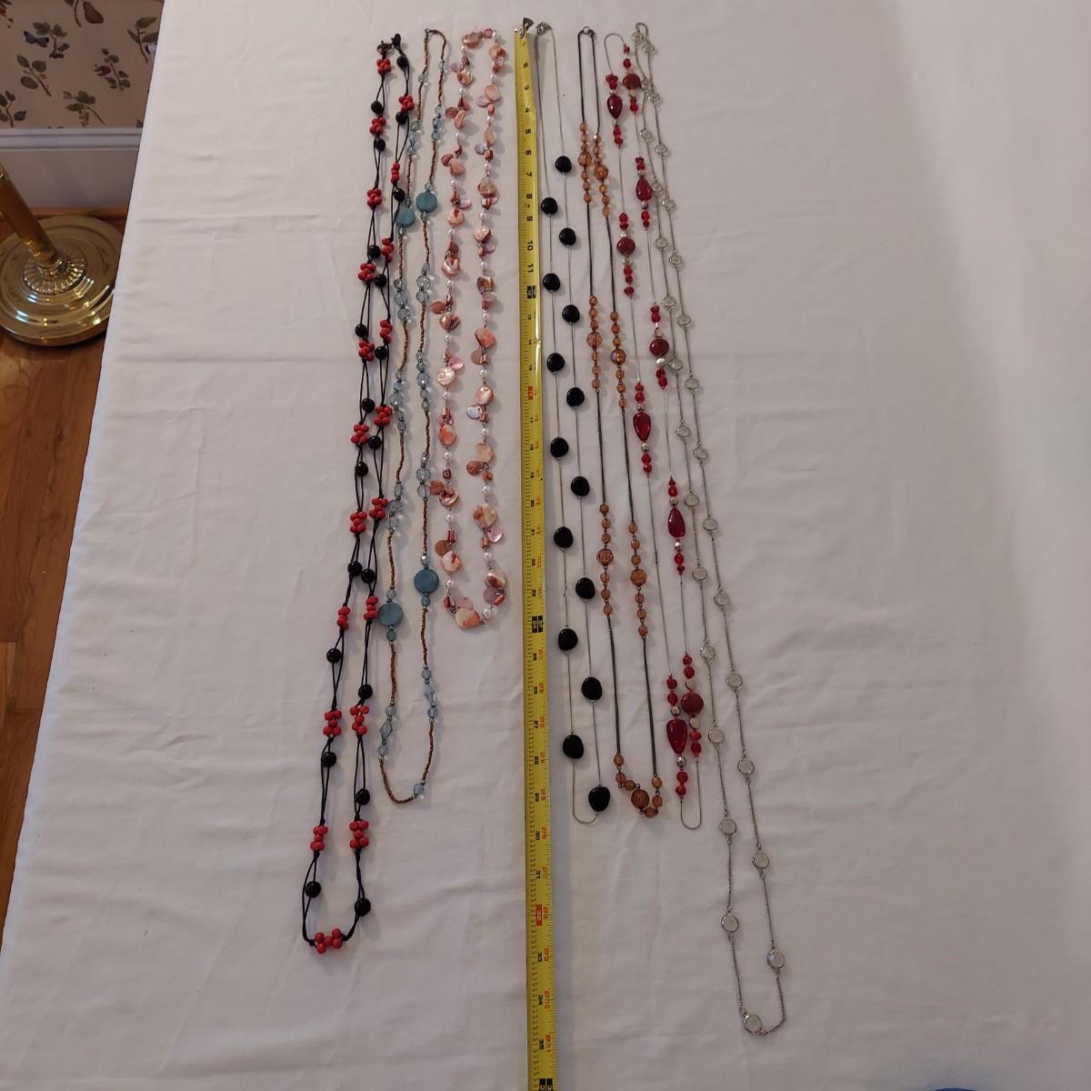 Lot includes approximately 30 necklaces in a casual or costume jewelry style. Some are beaded, some are chain link. They range from 14-72” in length. Please see photos for details. Shipping available. All sales are final. No returns or refunds. Please bid accordingly.