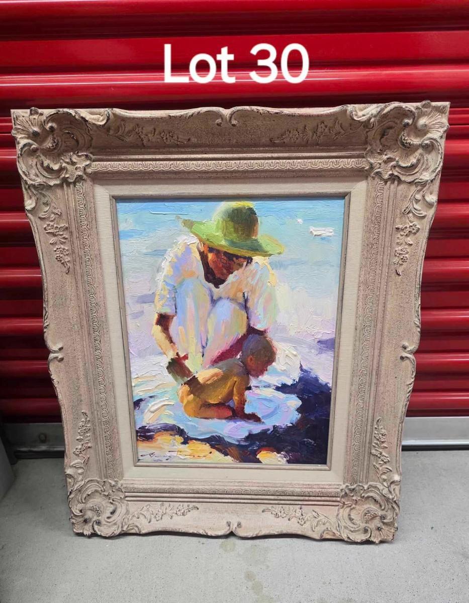 Weighs 5.5 lbs with frame is 24 x 19. The art measures 12 x 16.