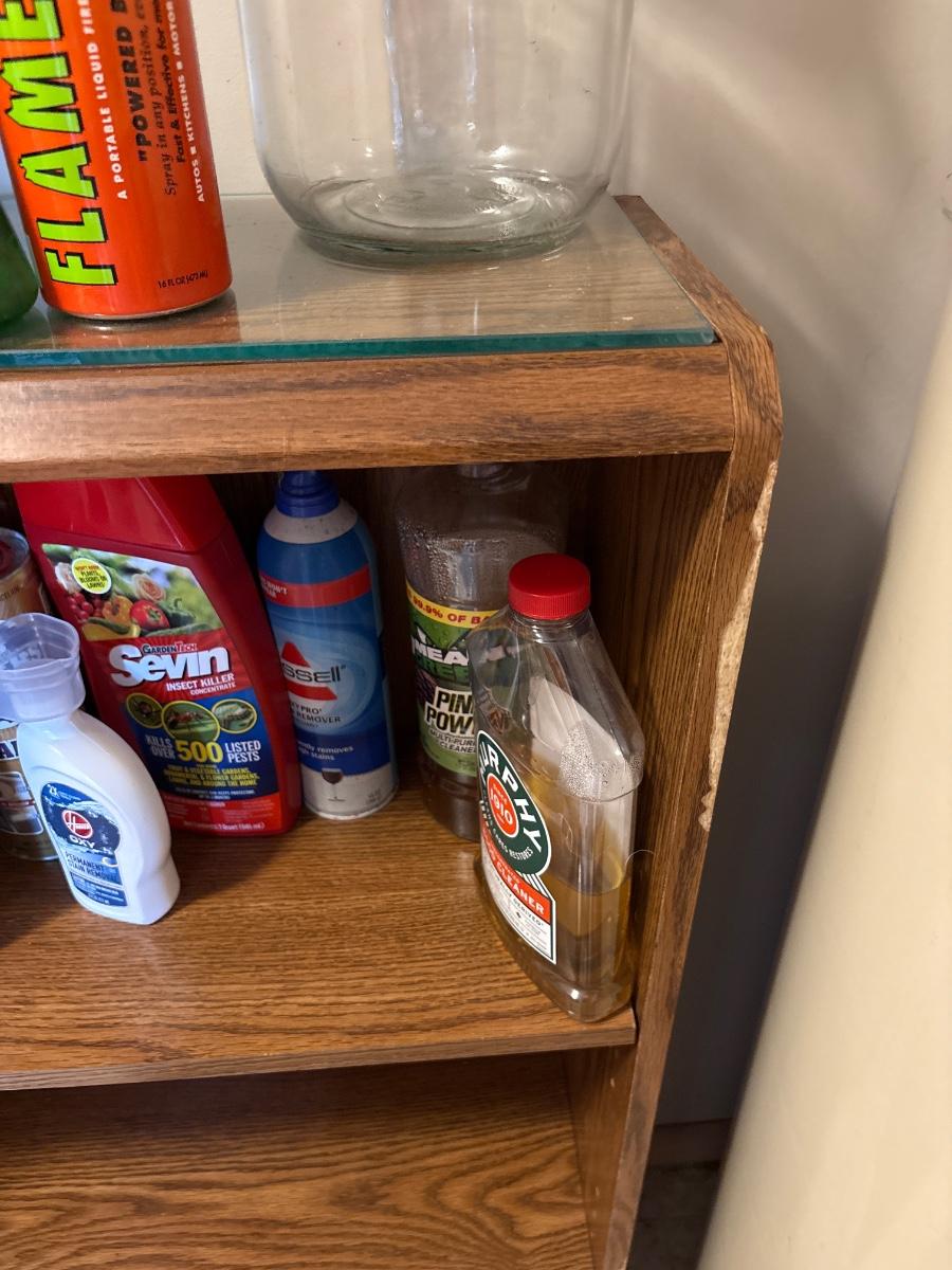 Shelf is 10” x 25” x 42” high. Includes glass top