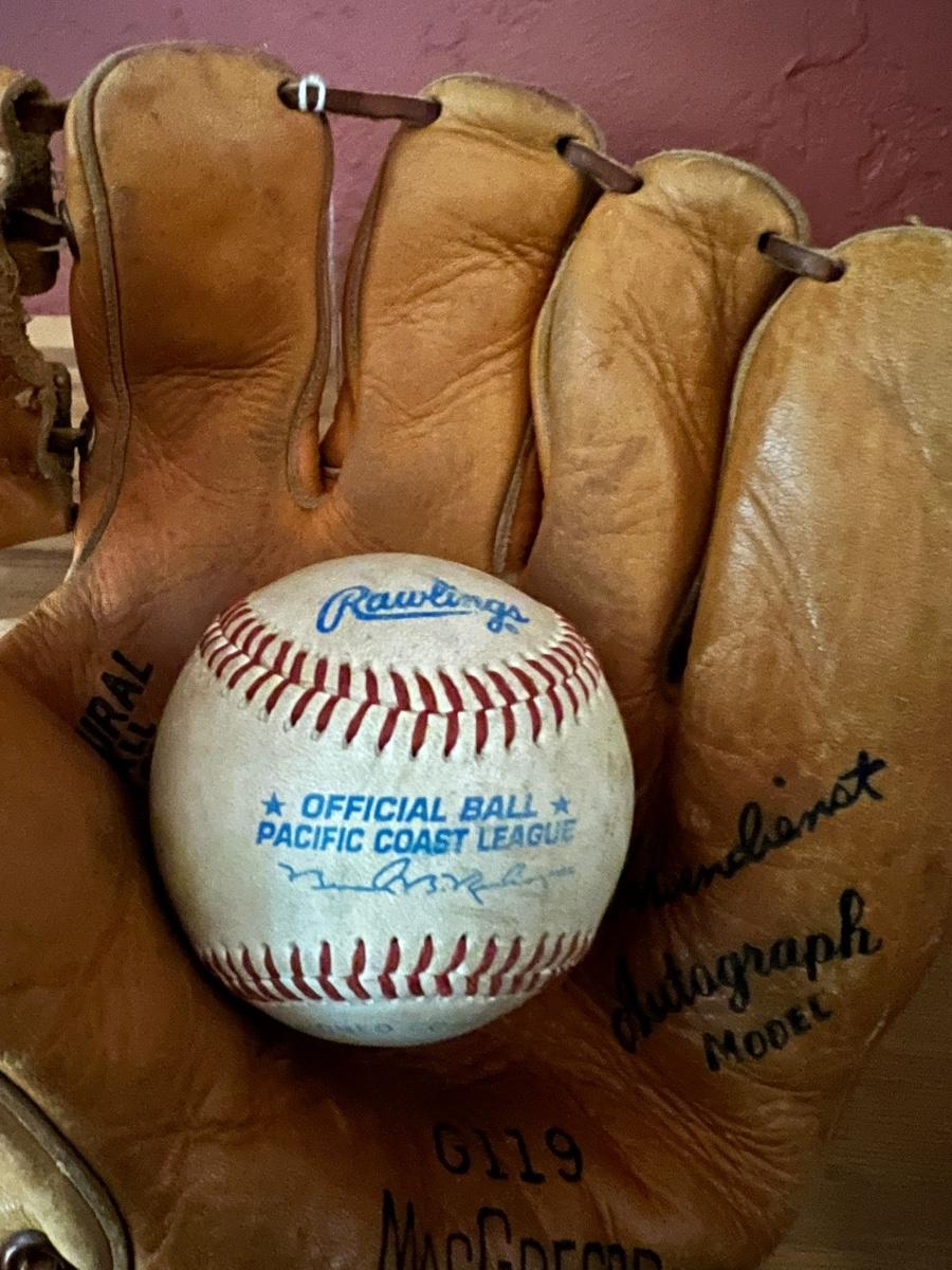 Signed Baseball with MacGregor Leather Baseball Gloves