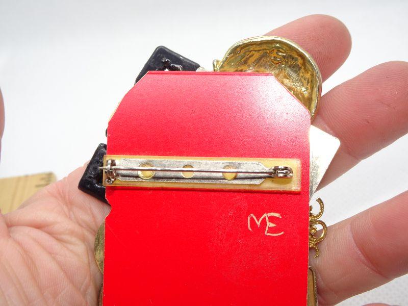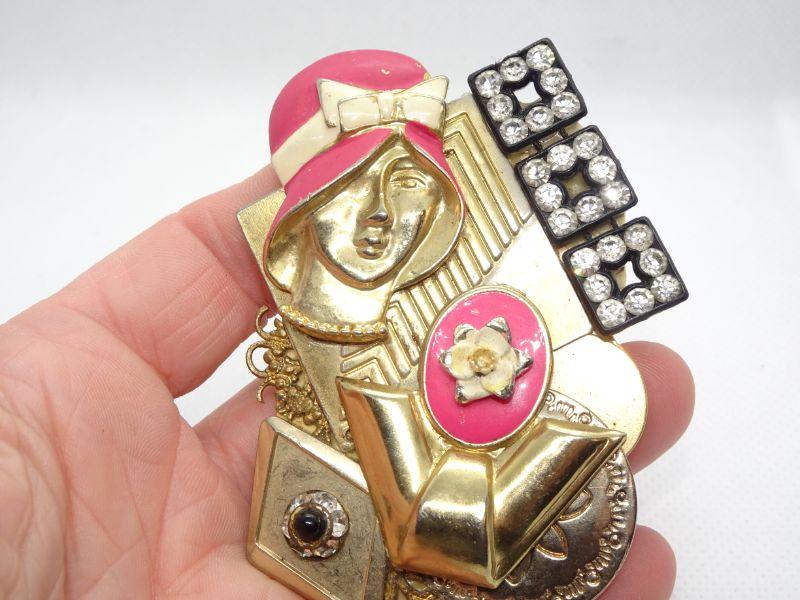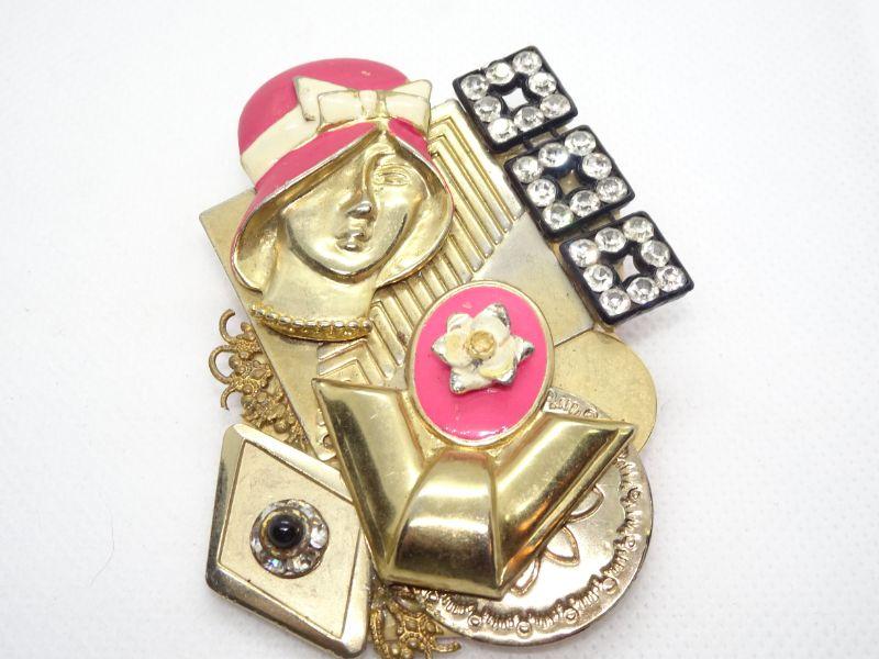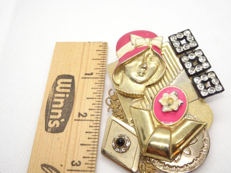 Signed Collage Flapper Girl Art Deco Style Brooch PIn