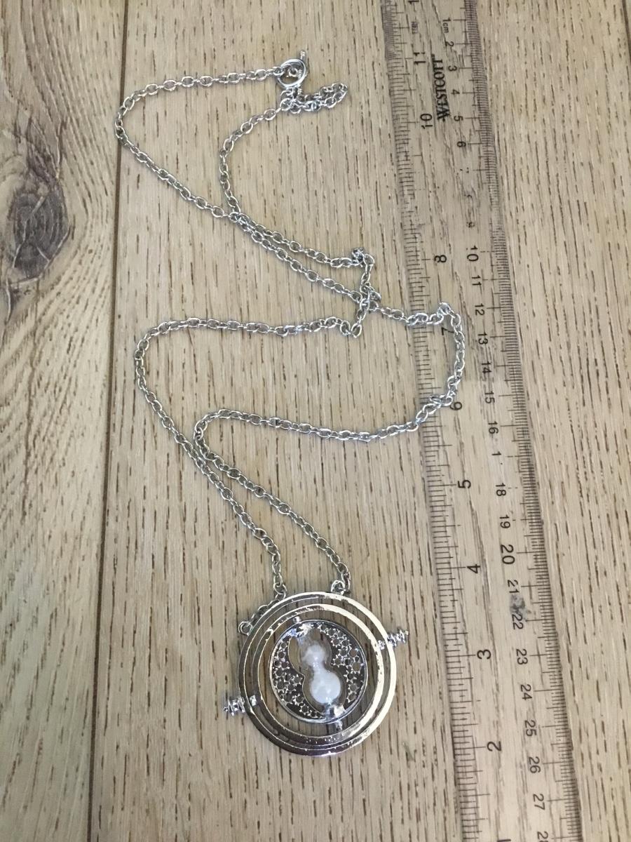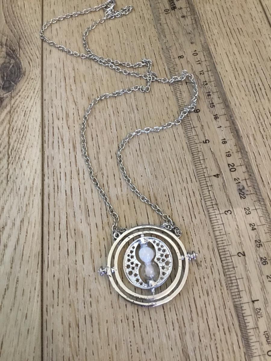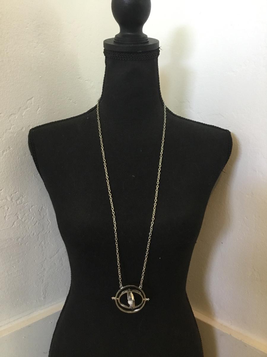 Silver tone hour, glass, pendant statement, necklace
