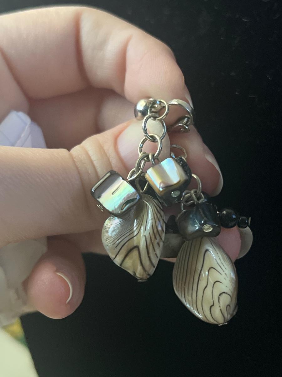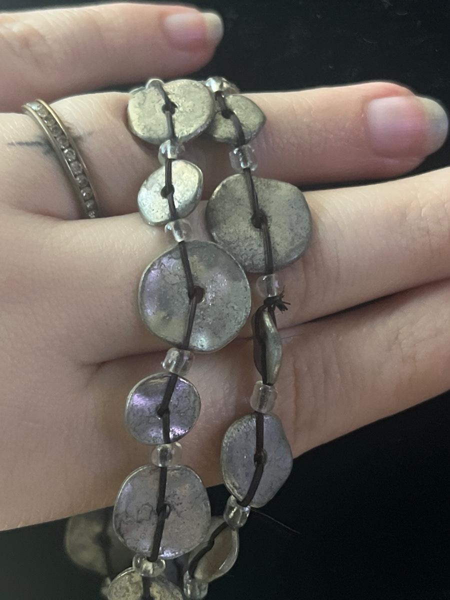 3 and 1/2in black and silver toned circle shaped stretch bracelet