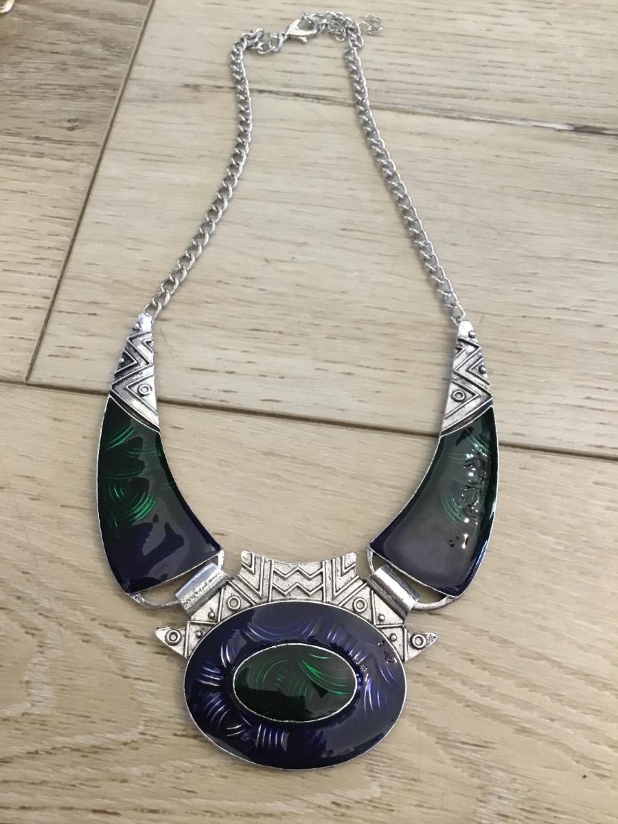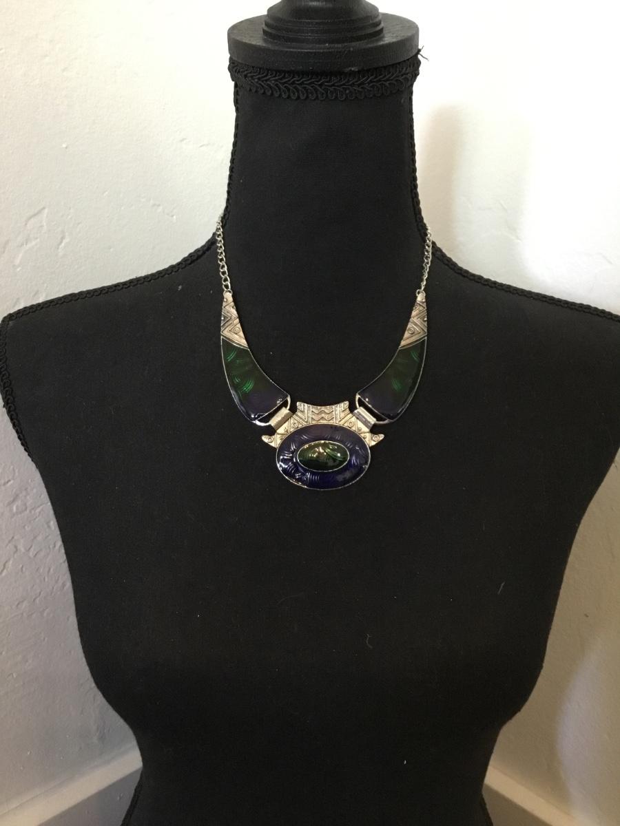 Silver-tone enamel statement necklace